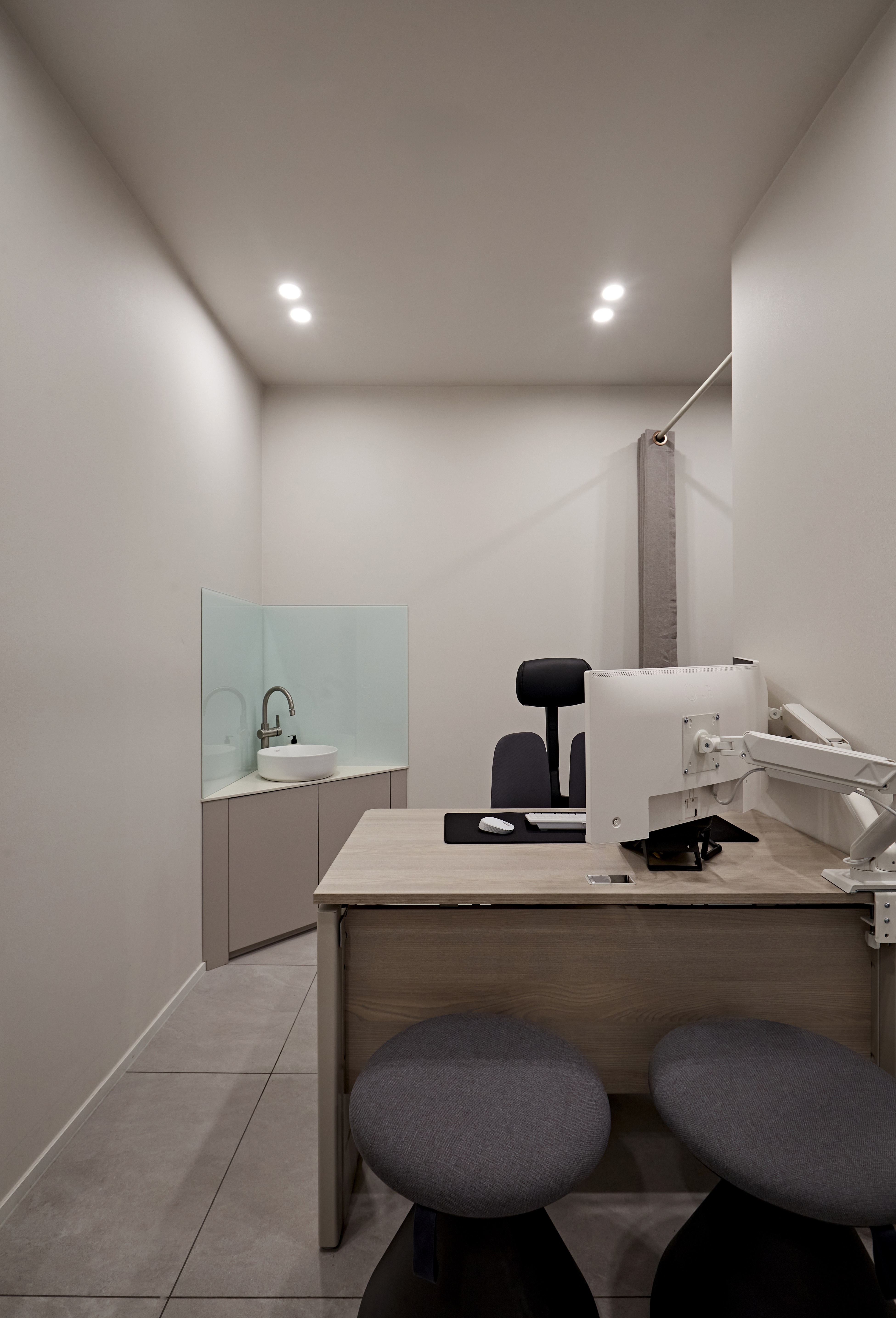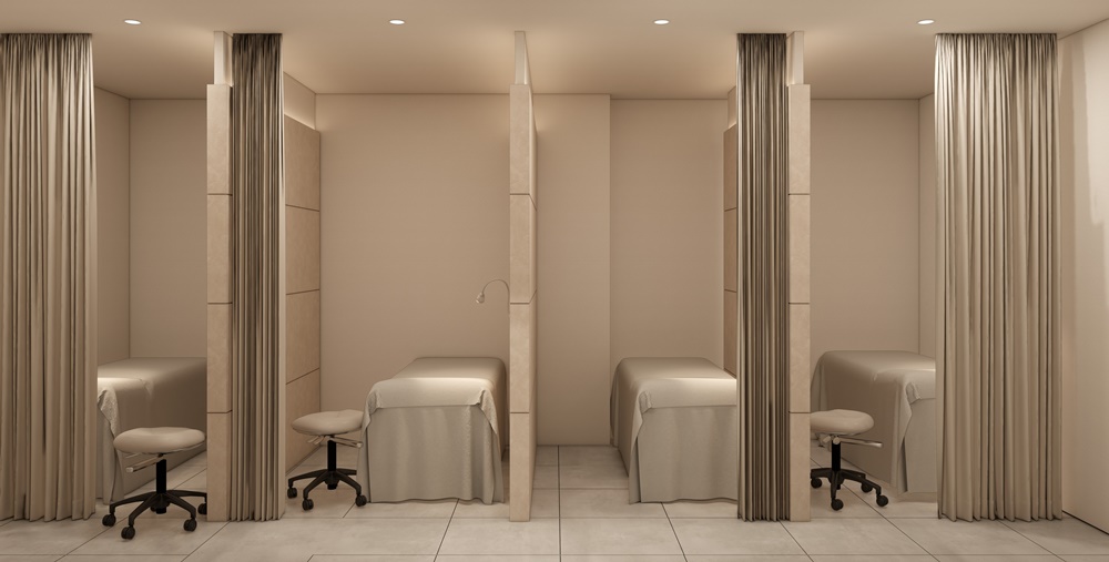 파티션이나 블라인드 등을 활용해서 환자의 대기 공간과 진료 공간을 분리할 수 있습니다.