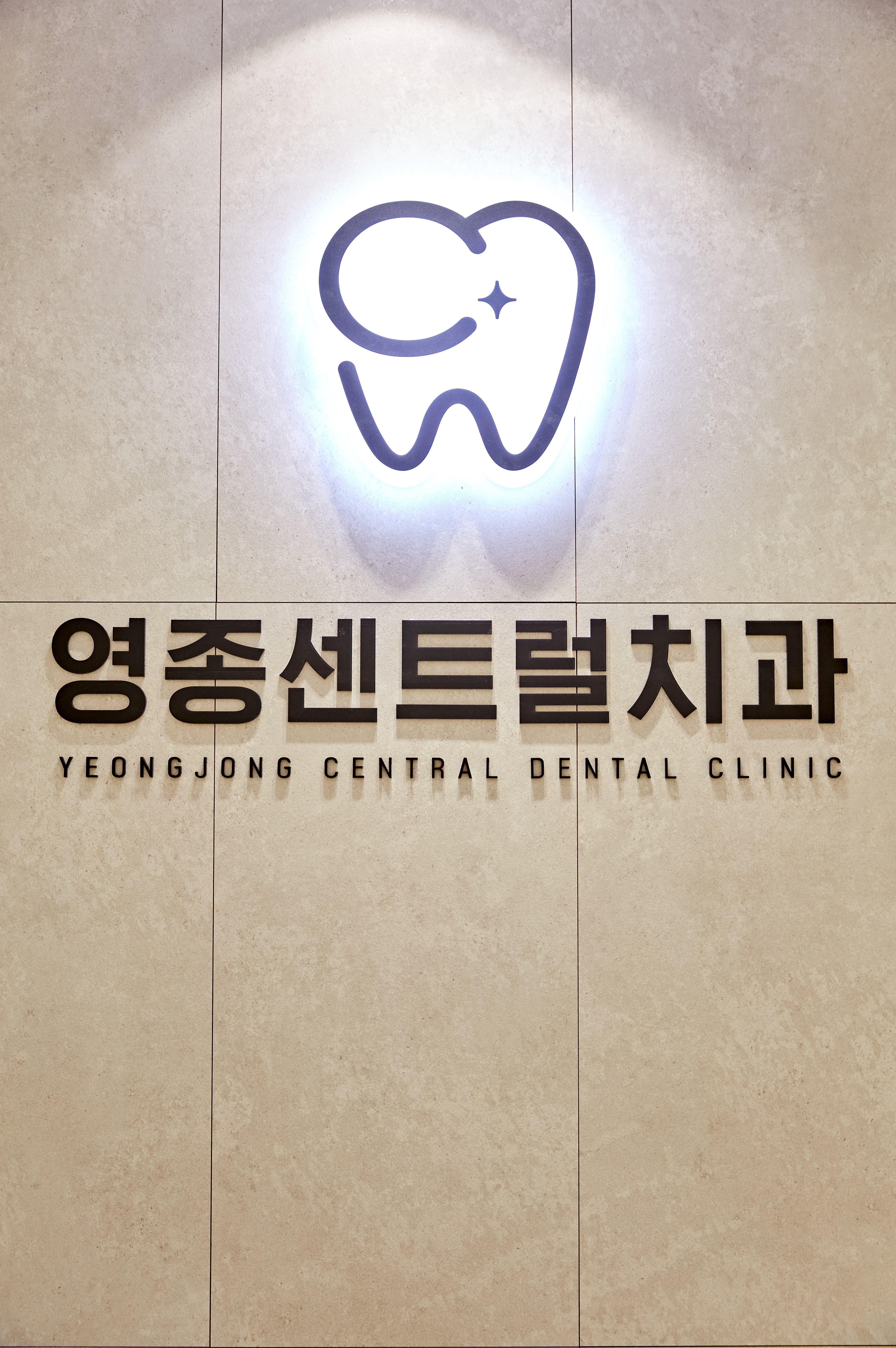 벽면에 귀여운 그래픽 로고와 병원명을 기재해