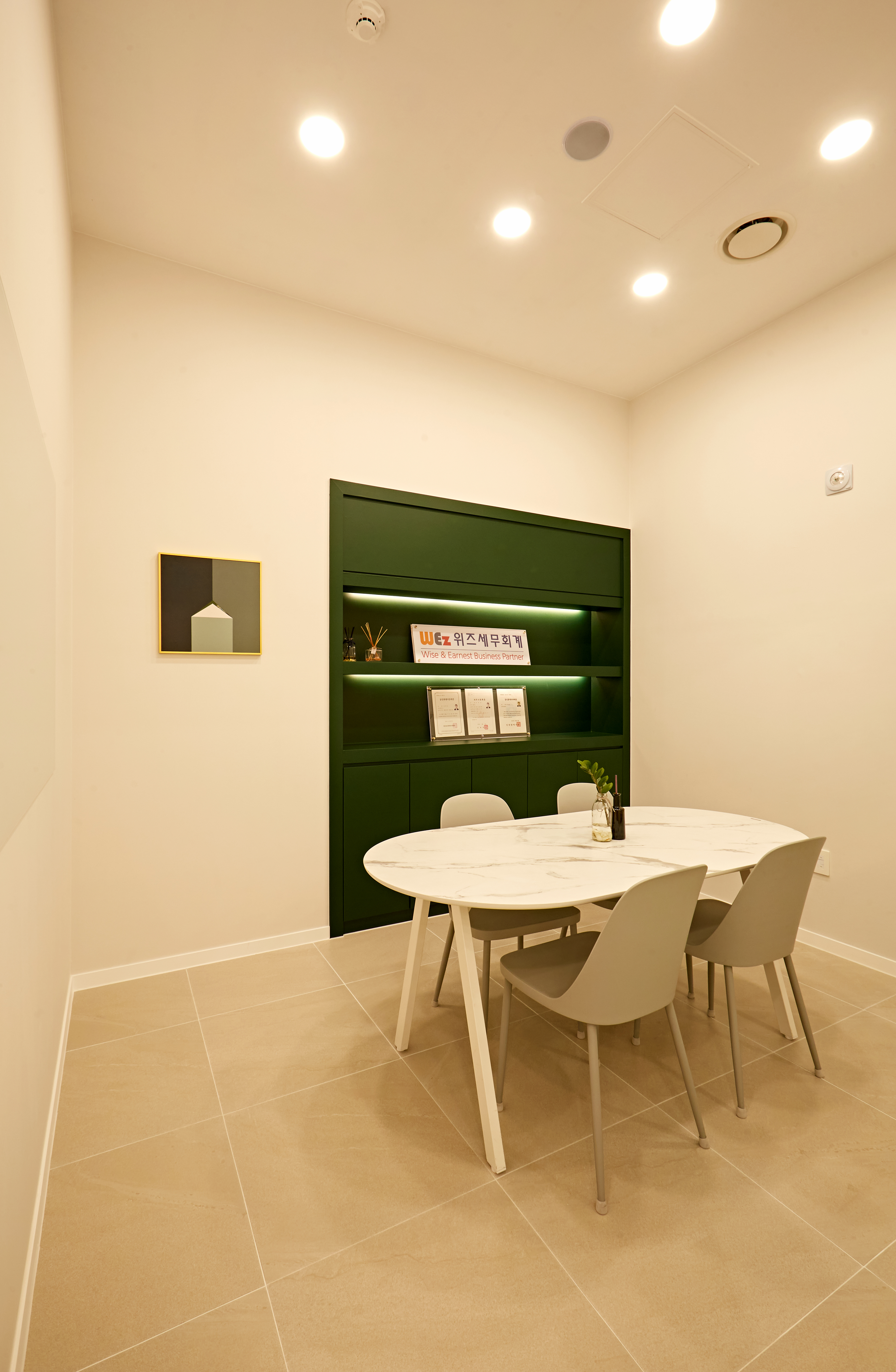 회의 공간에는 벽면에 그린 컬러의