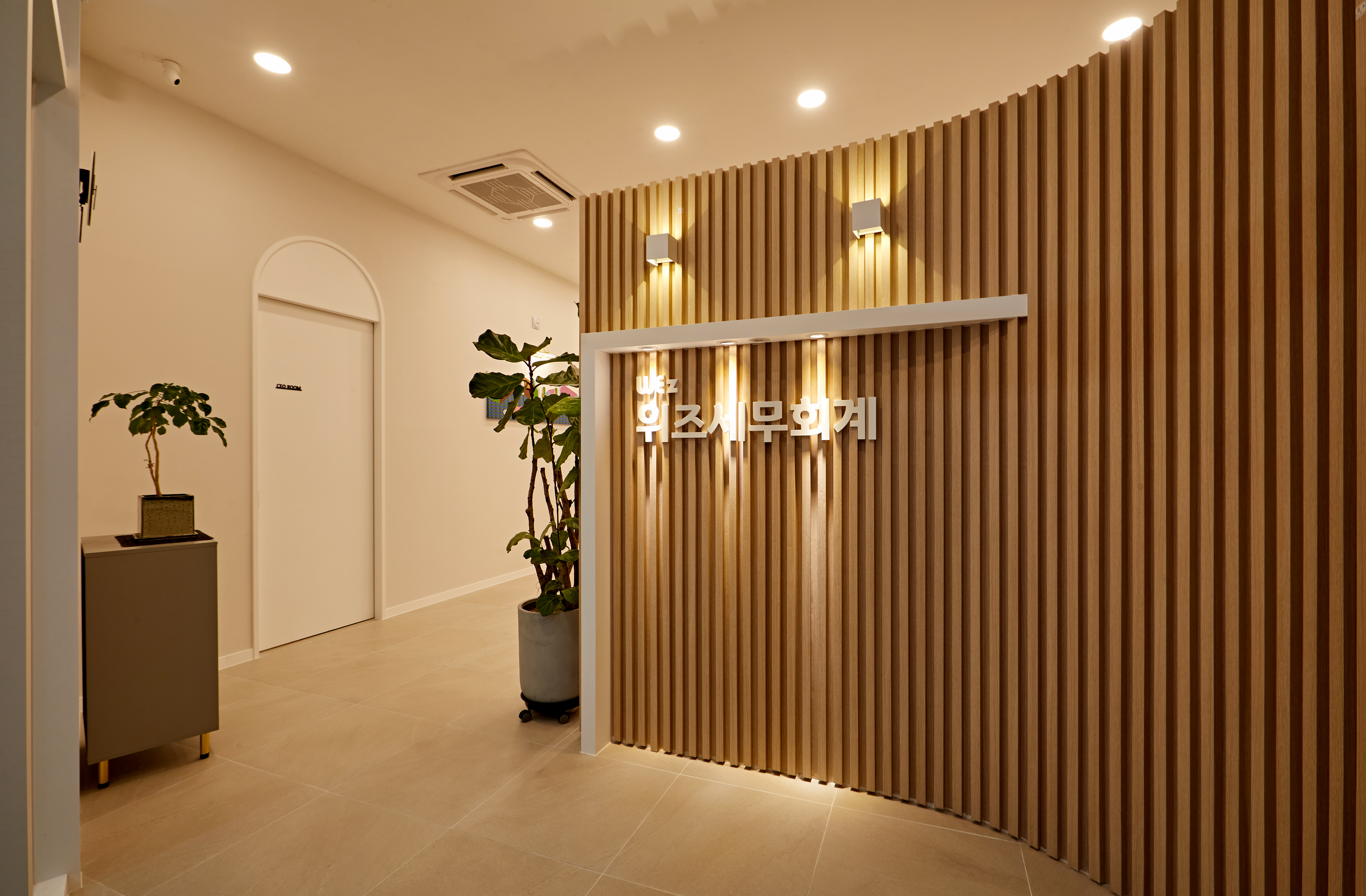 사무실로 들어오는 입구에는 우드 패널에