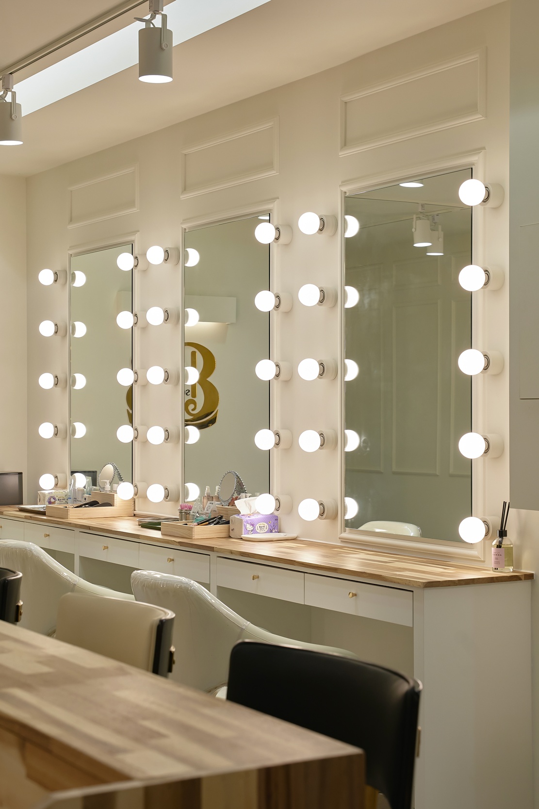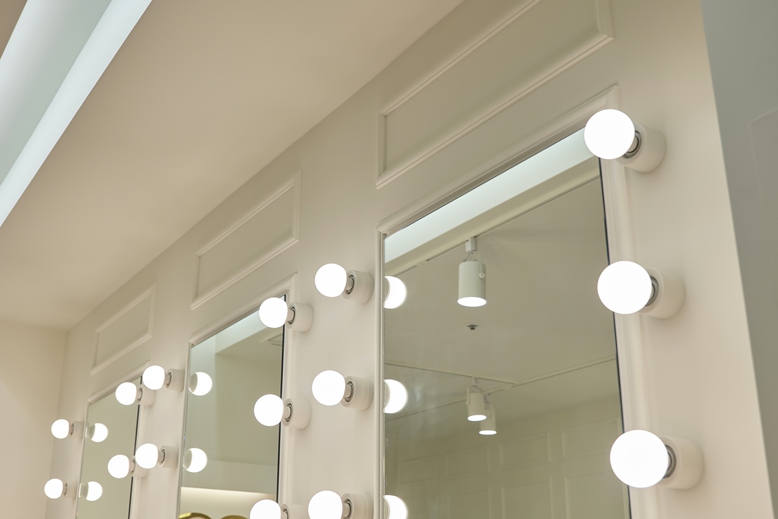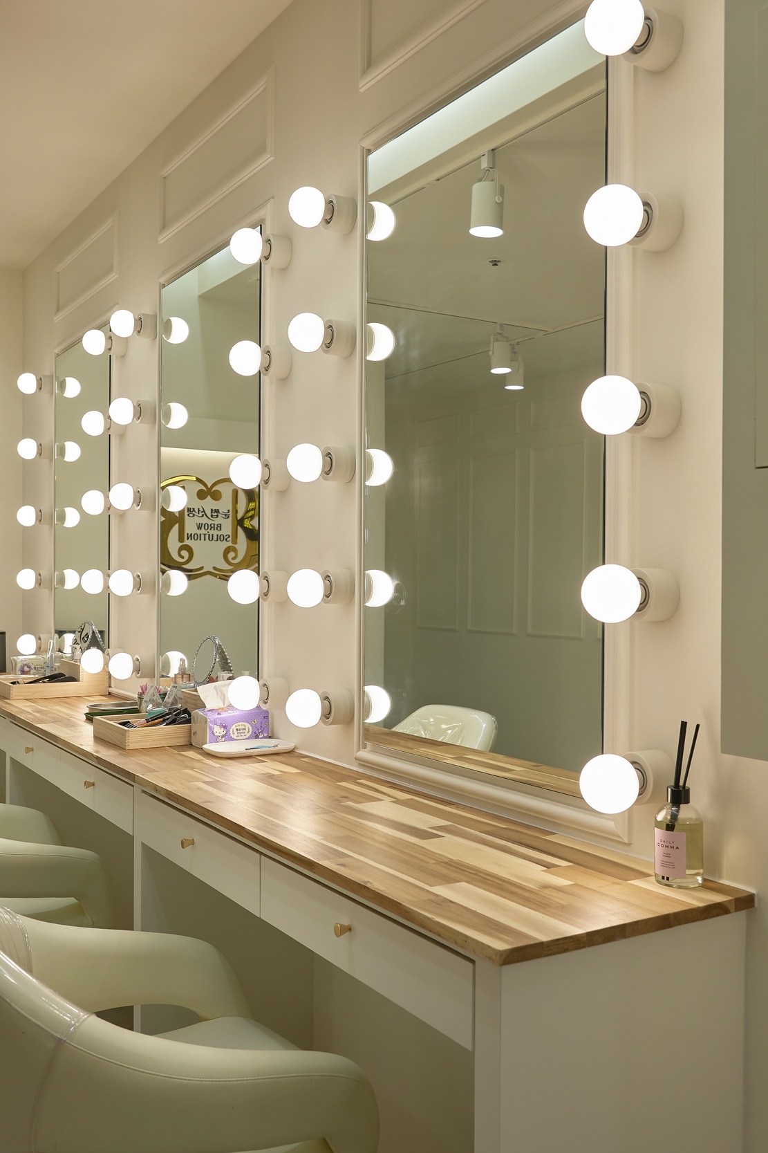 또 거울 주변에는 스팟 조명을 설치하여 얼굴을 더욱 돋보이게 할 수 있습니다.