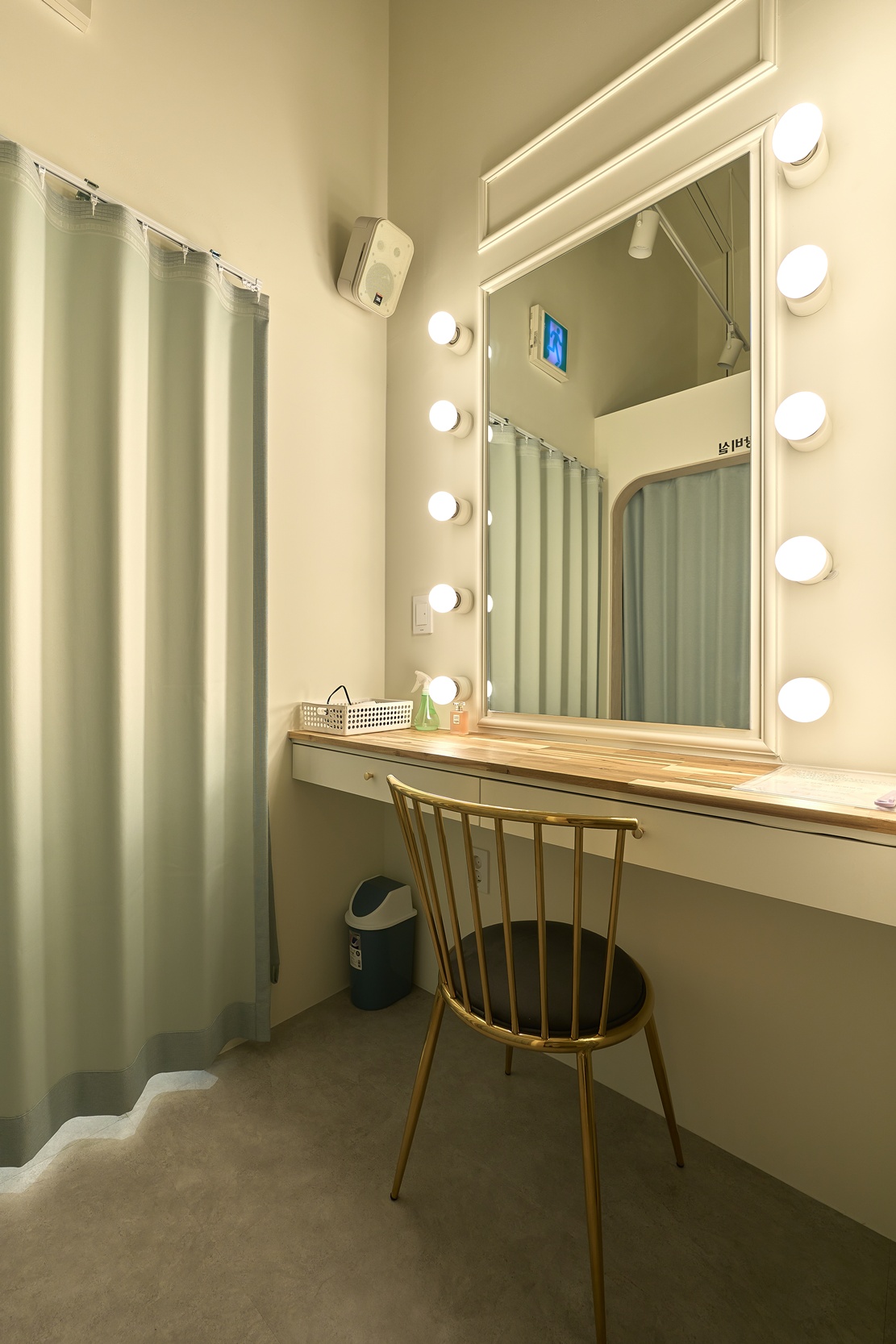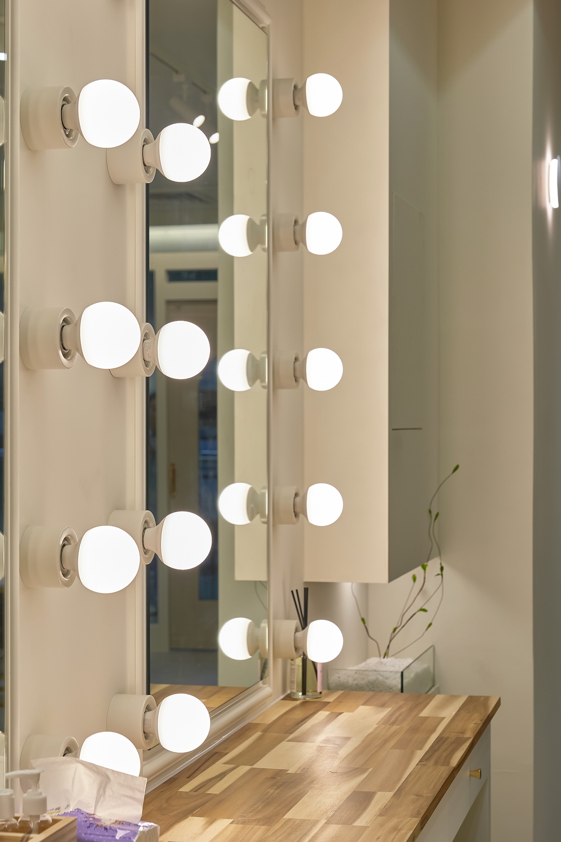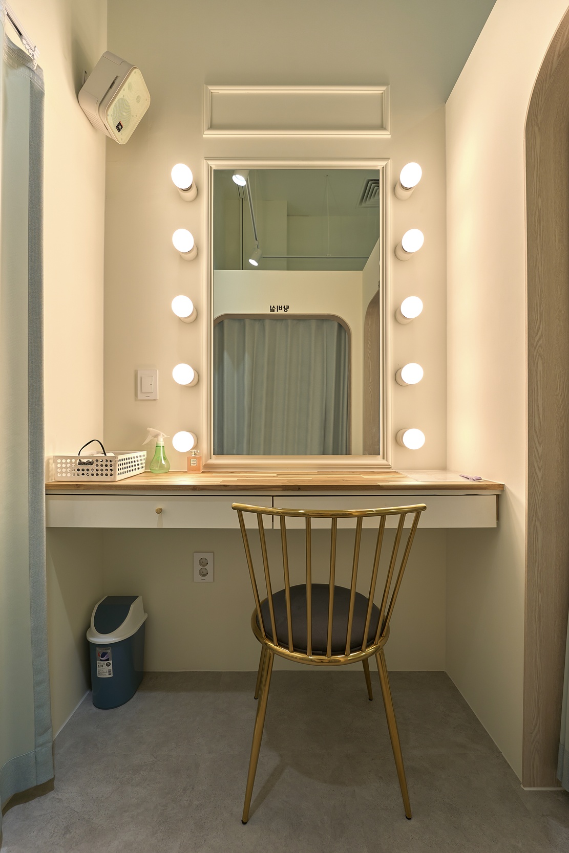 또 거울 주변에는 스팟 조명을 설치하여 얼굴을 더욱 돋보이게 할 수 있습니다.