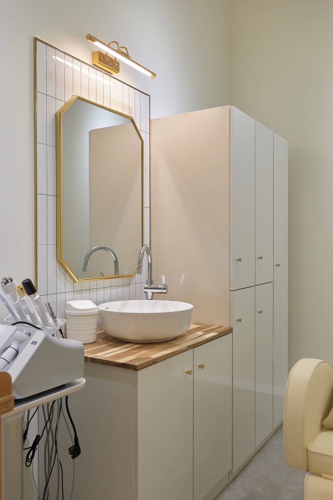 뷰티 시술에 필요하 도구와 재료를 보관할수 있는 수납공간도 충분히 확보 해야합니다.