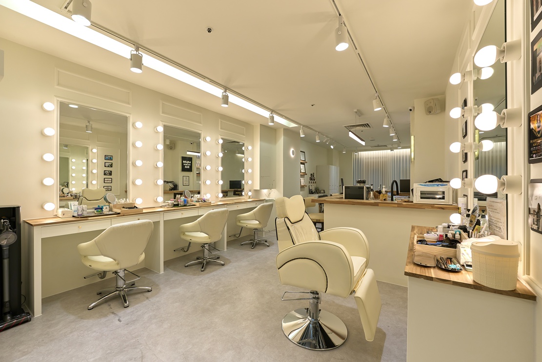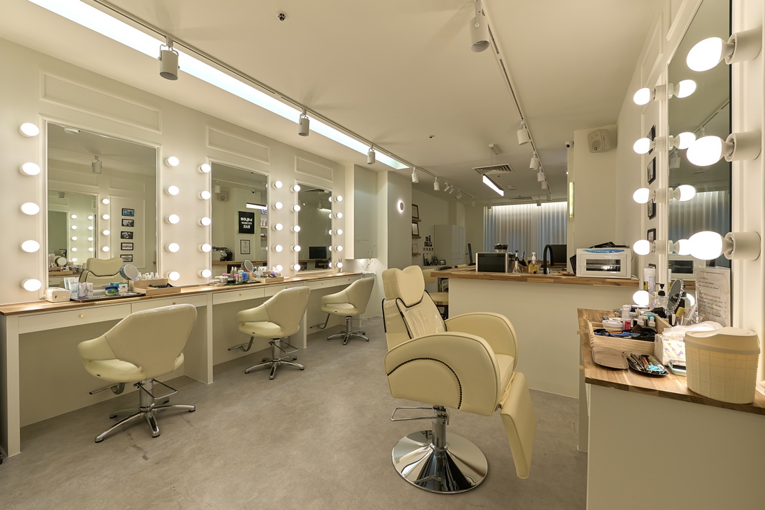 뷰티샵에서는 조명을 매우 중요하게 여깁니다. 조명은 고객의 얼굴을 밝고 화사하게 만들어주며, 피부 톤과 메이크업 색상을
