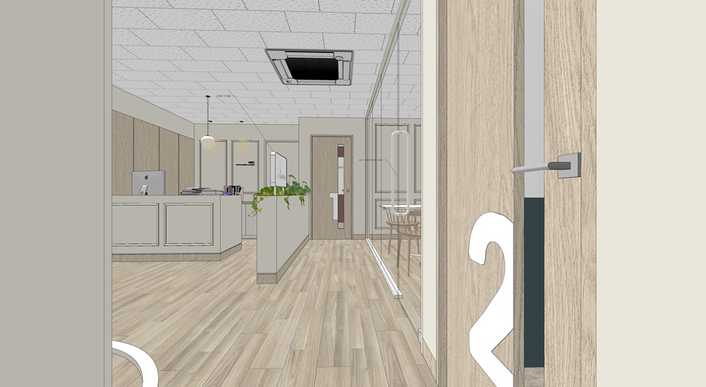 천장에는 밝은 조명을 설치하였고 바닥에는 우드 소재의 바닥재를 깔아 따뜻하고 아늑한 느낌을 주었습니다.