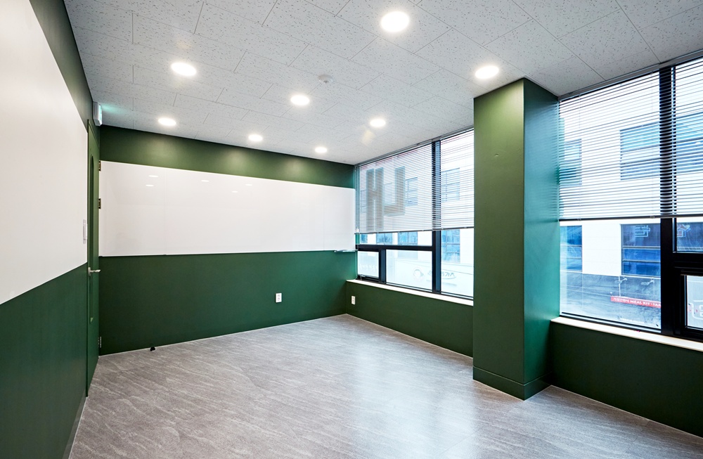 각 강의실마다 컬러를 다르게 활용하여 차별화된 분위기를 연출하였고, 이를 통해 학생들의 학습 의욕을 높일 수 있도록 하였습니다.