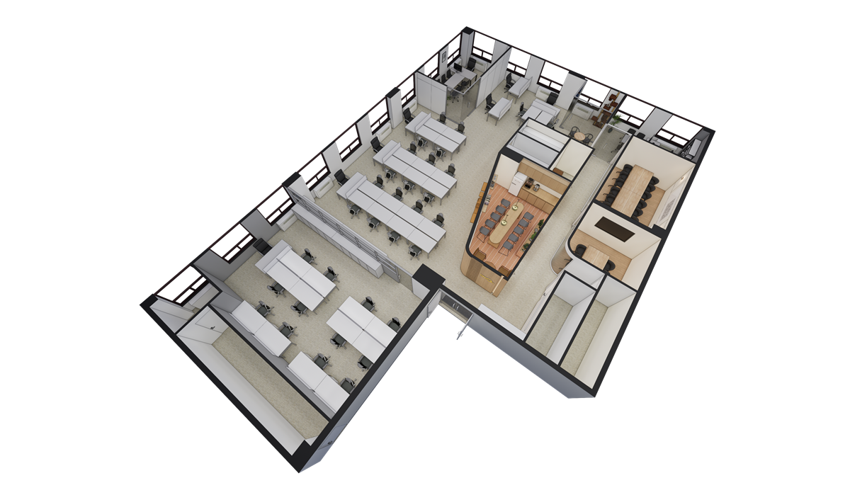 파티션이나 가구 배치를 통해 개별 업무 공간과 공동 작업 공간을 효과적으로 구분할 수 있죠.