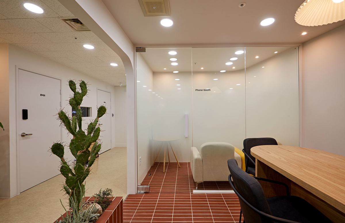 회의실을 필요할 때만 사용하는 방식으로 설계하면, 평소에는 공간을 넓게 사용할 수 있게 되겠죠.