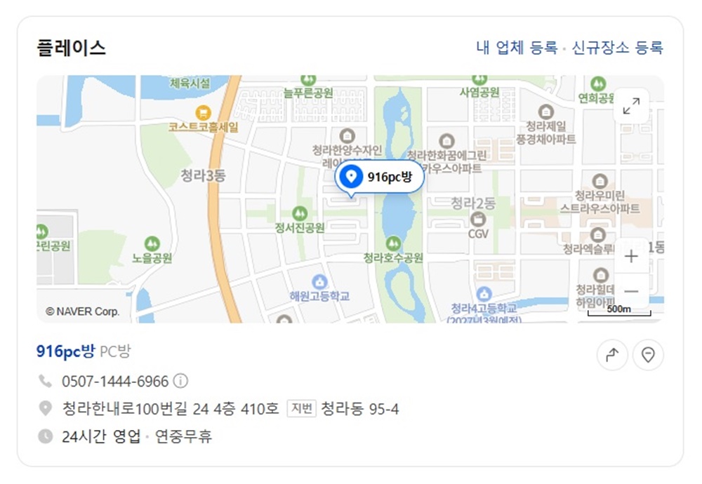 청라피시방 인천 916pc방 위치