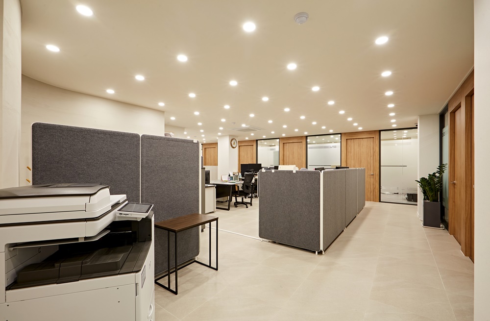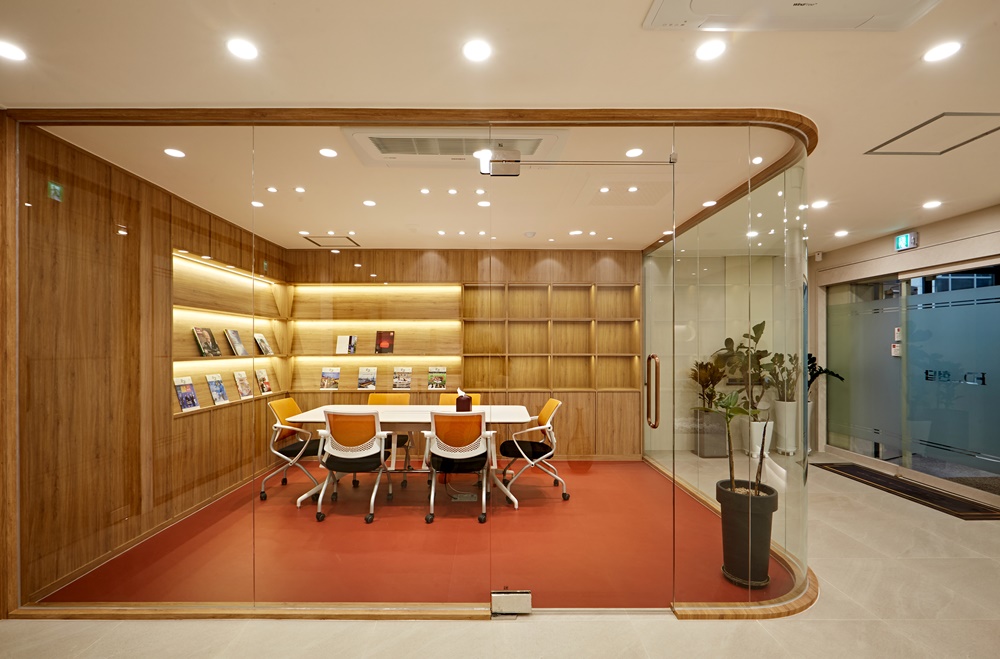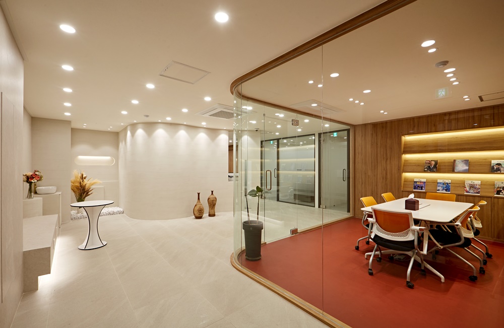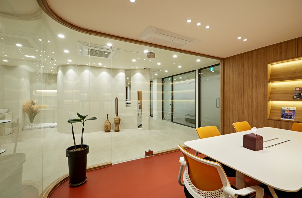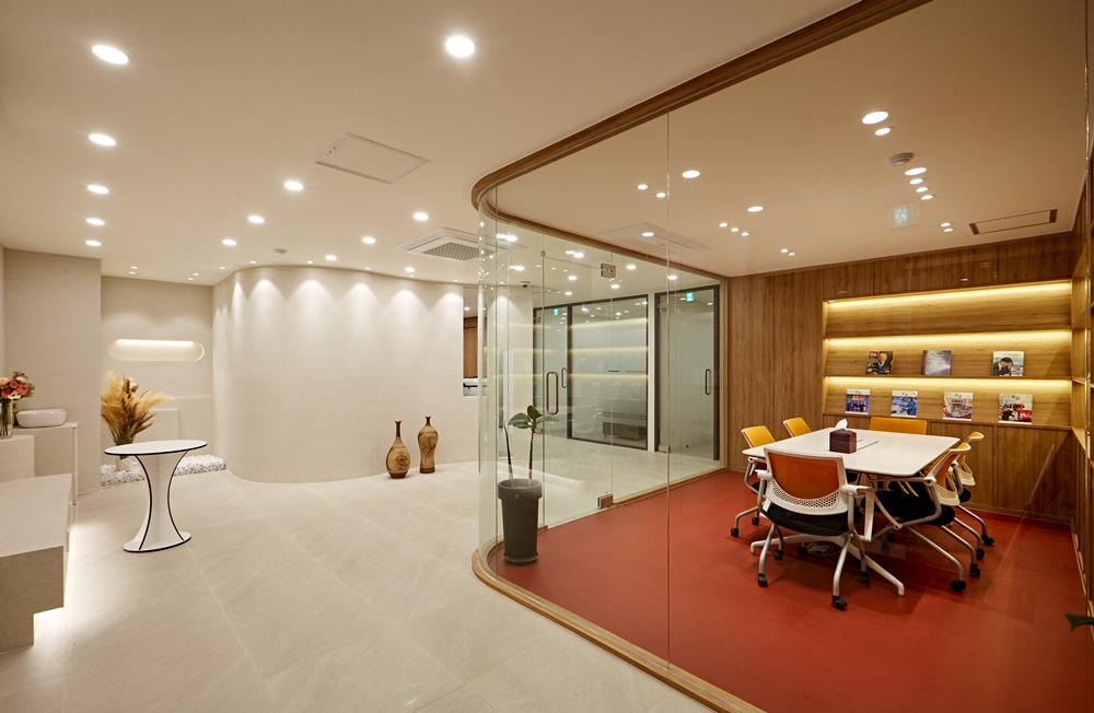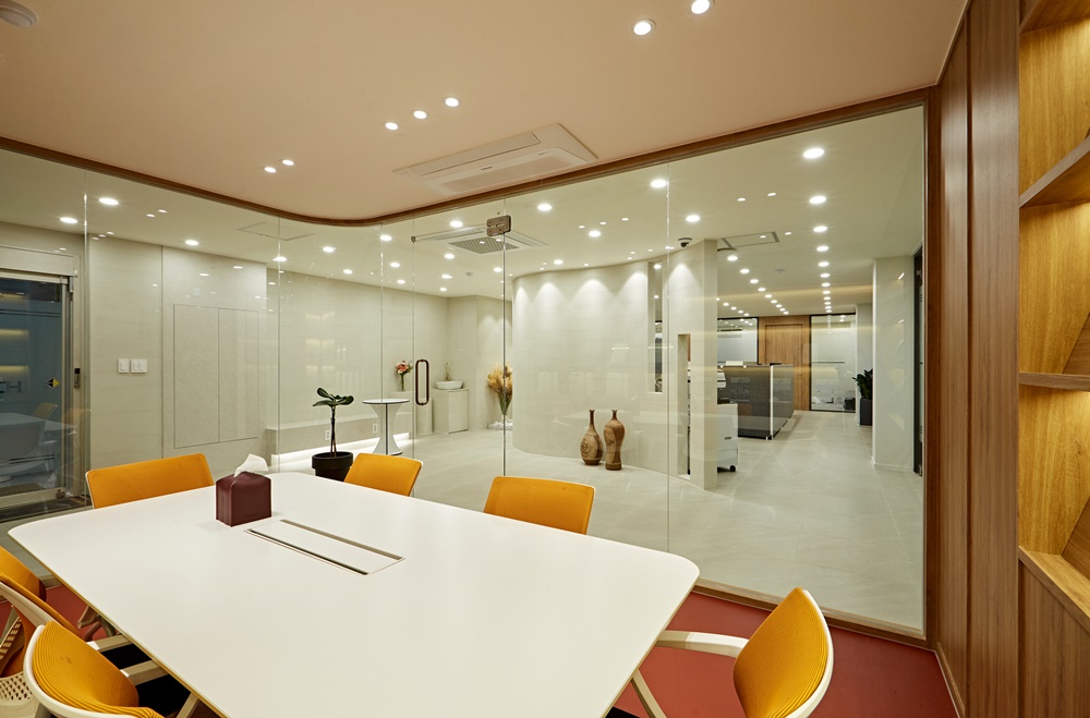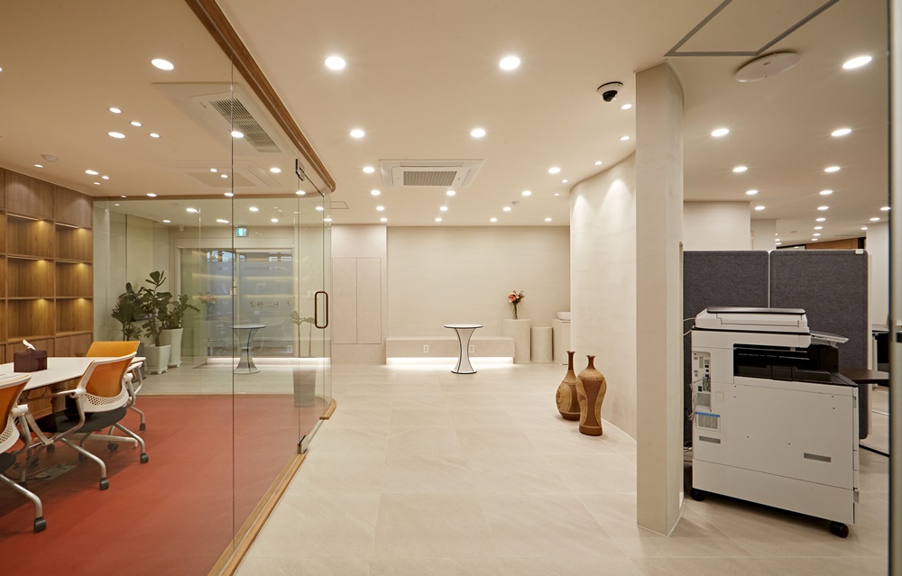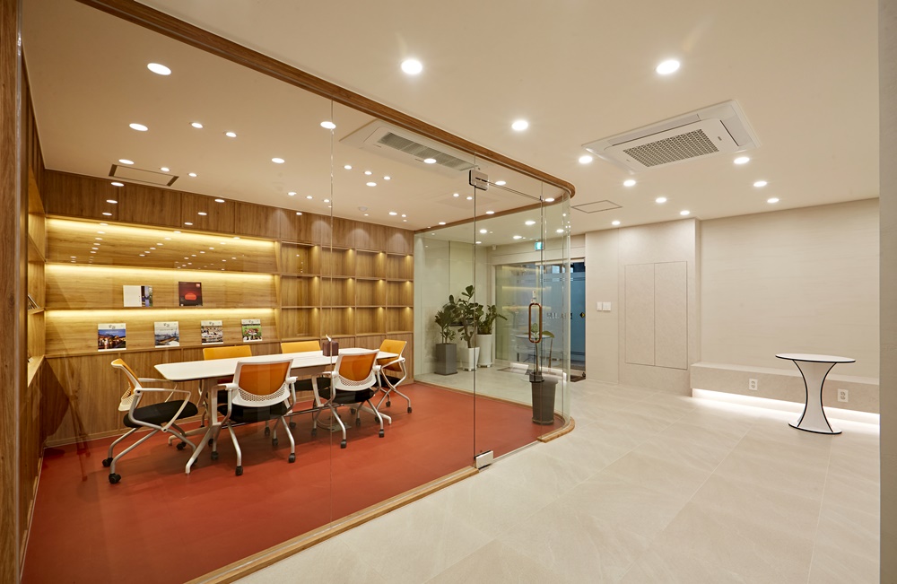 단순하게 공간을 꾸미는 것이 아닌 업무 효율성을 고려하여 레이아웃을 설계하였고, 포인트 컬러와 조명을 활용하여 세련되면서도 무게감 있는 분위기를 조성하였습니다.