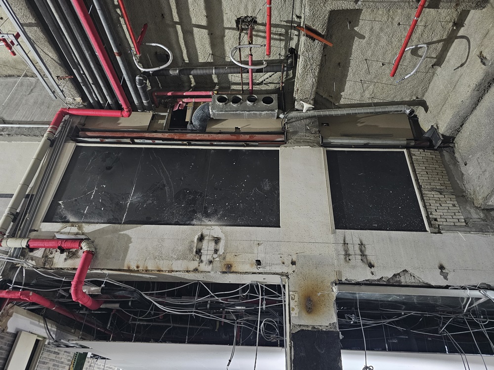 특히 코트와 사무 공간을 잇는 대형 유리창이 설치될 구간은 강화유리의 무게를 견딜 수 있도록 특수 보강 작업을 더해 안전성을 최우선으로 고려했죠.