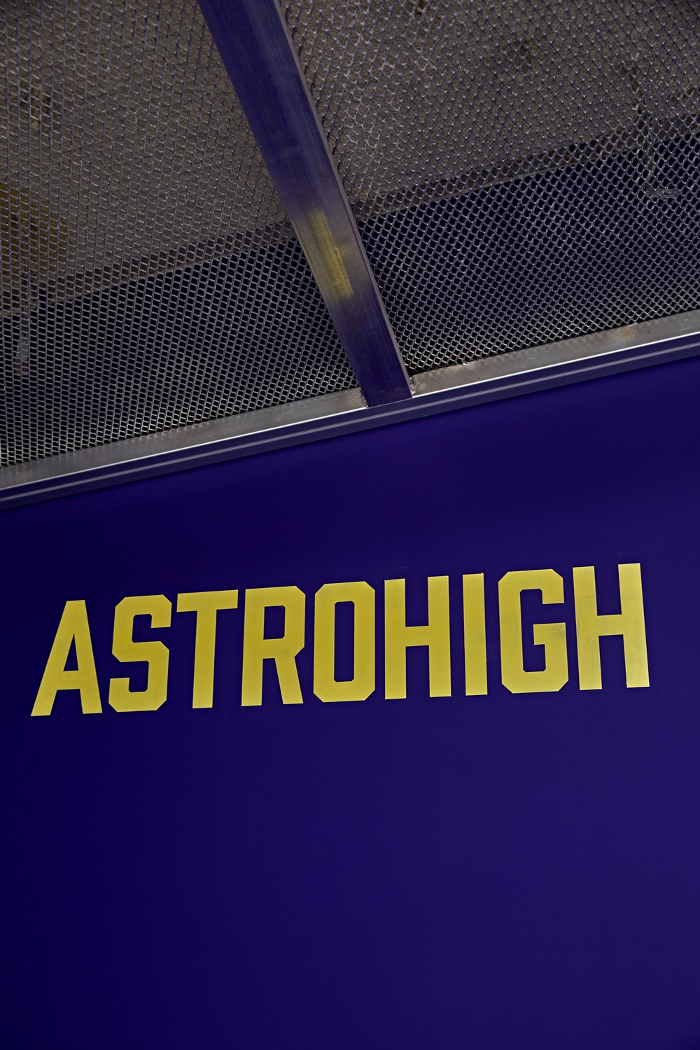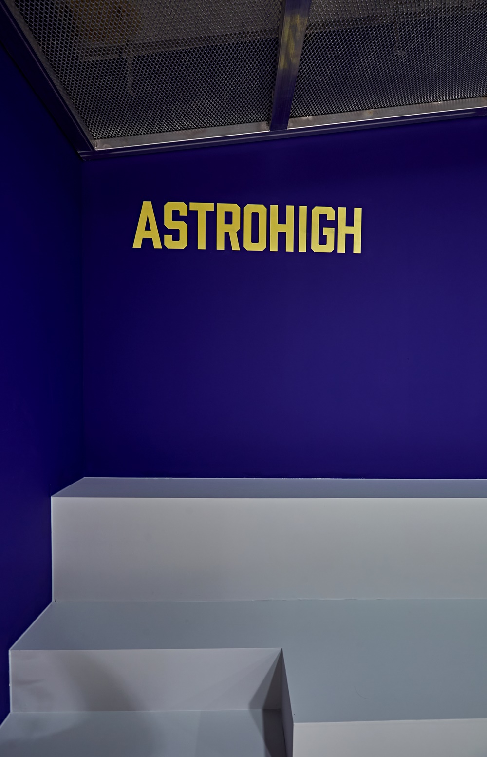 간판 중앙에 선명하게 새겨진 파란색 브랜드 영문 텍스트는 공간의 아이덴티티를 명확히 선언하며, 방문객에게 이곳이 아주 특별한 하이엔드 스포츠 공간임을 즉각적으로 전달한답니다.