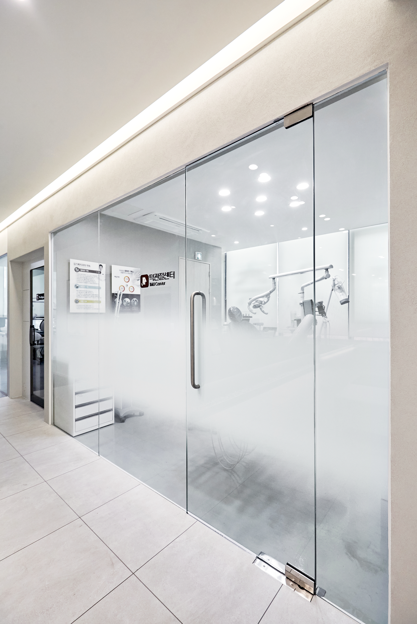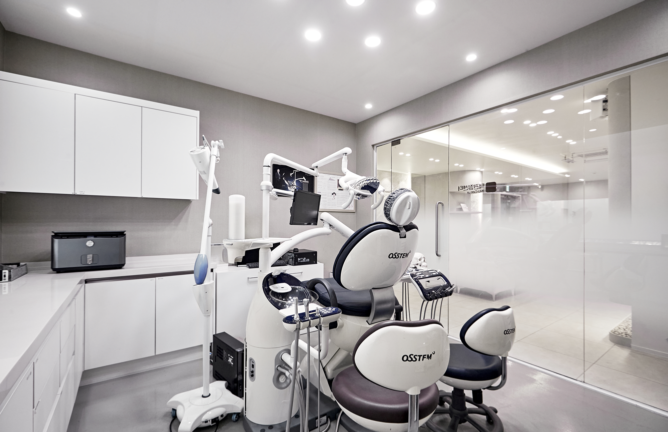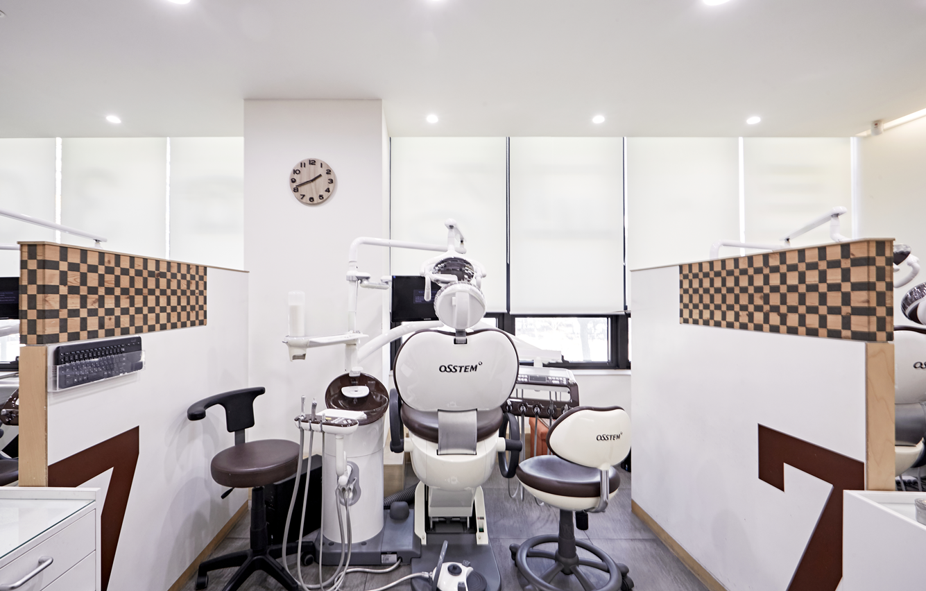 조명은 환자의 시야에 부담이 가지 않도록 배치했으며, 치교공간 내부는 화이트톤으로 깔끔하게 유지하면서도