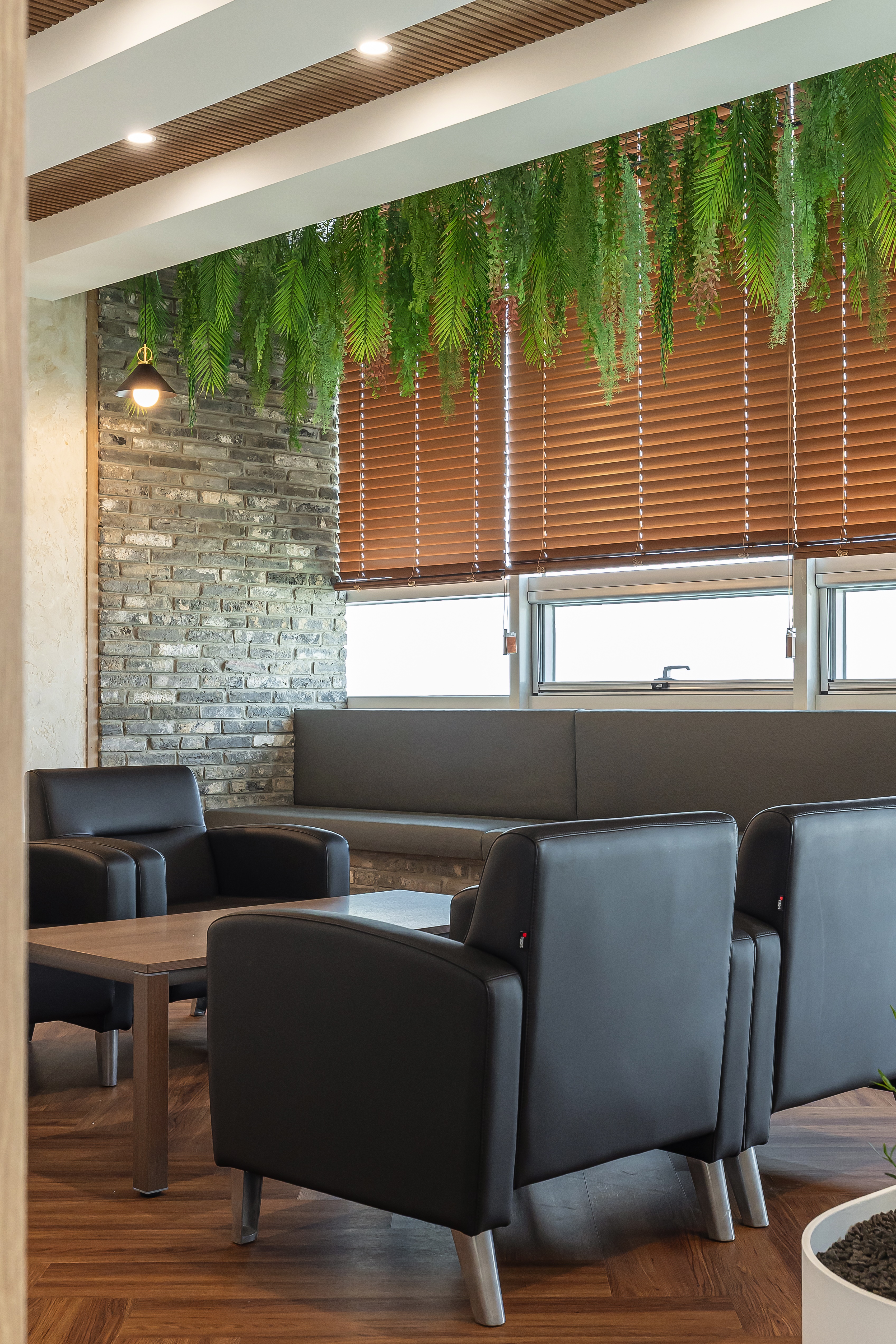 사무실 내부에 녹색 식물을 배치하거나 천연 소재를 활용한 인테리어는 시각적으로 편안함을 제공하며, 자연스러운 분위기를 연출하여 심리적인 안정감을 높여줍니다.