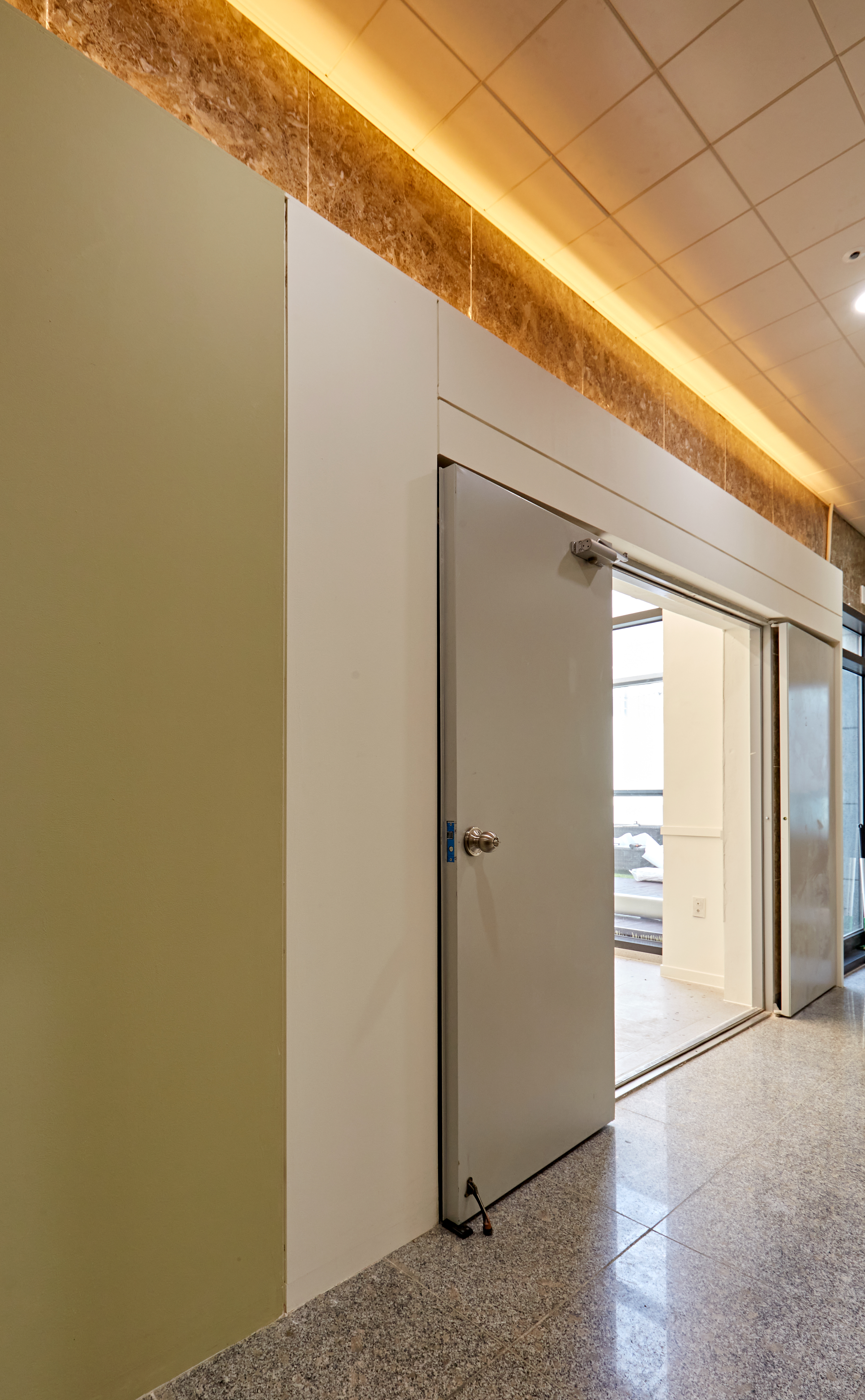 공간 분리를 위해 설치한 가벽을 지나가는 긴 통로가