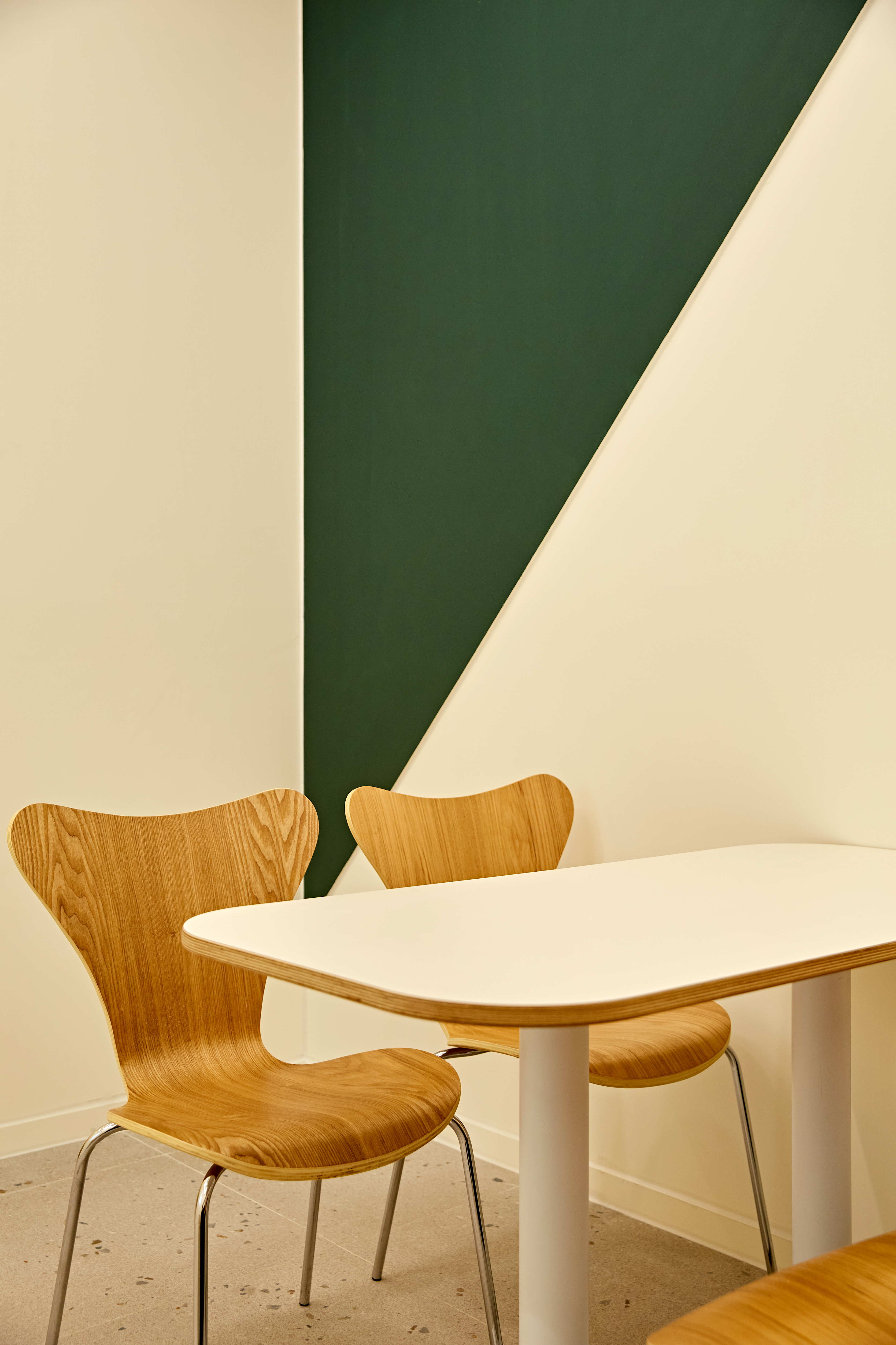 메인 사무실은 파스텔 톤의 페인트 배치를 토대로