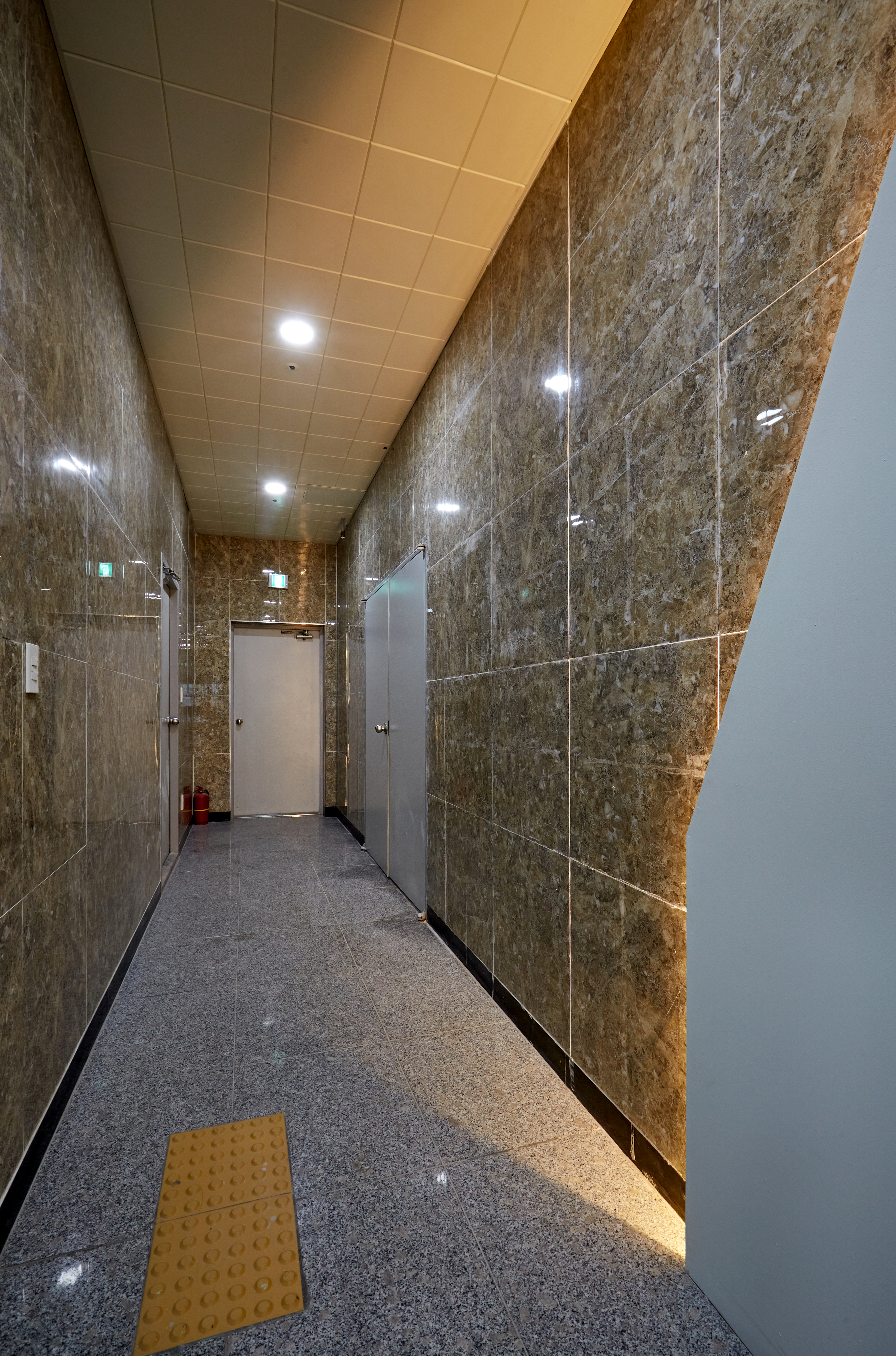 통로 부분 역시 간접 조명으로 긴 라인을 배치하여