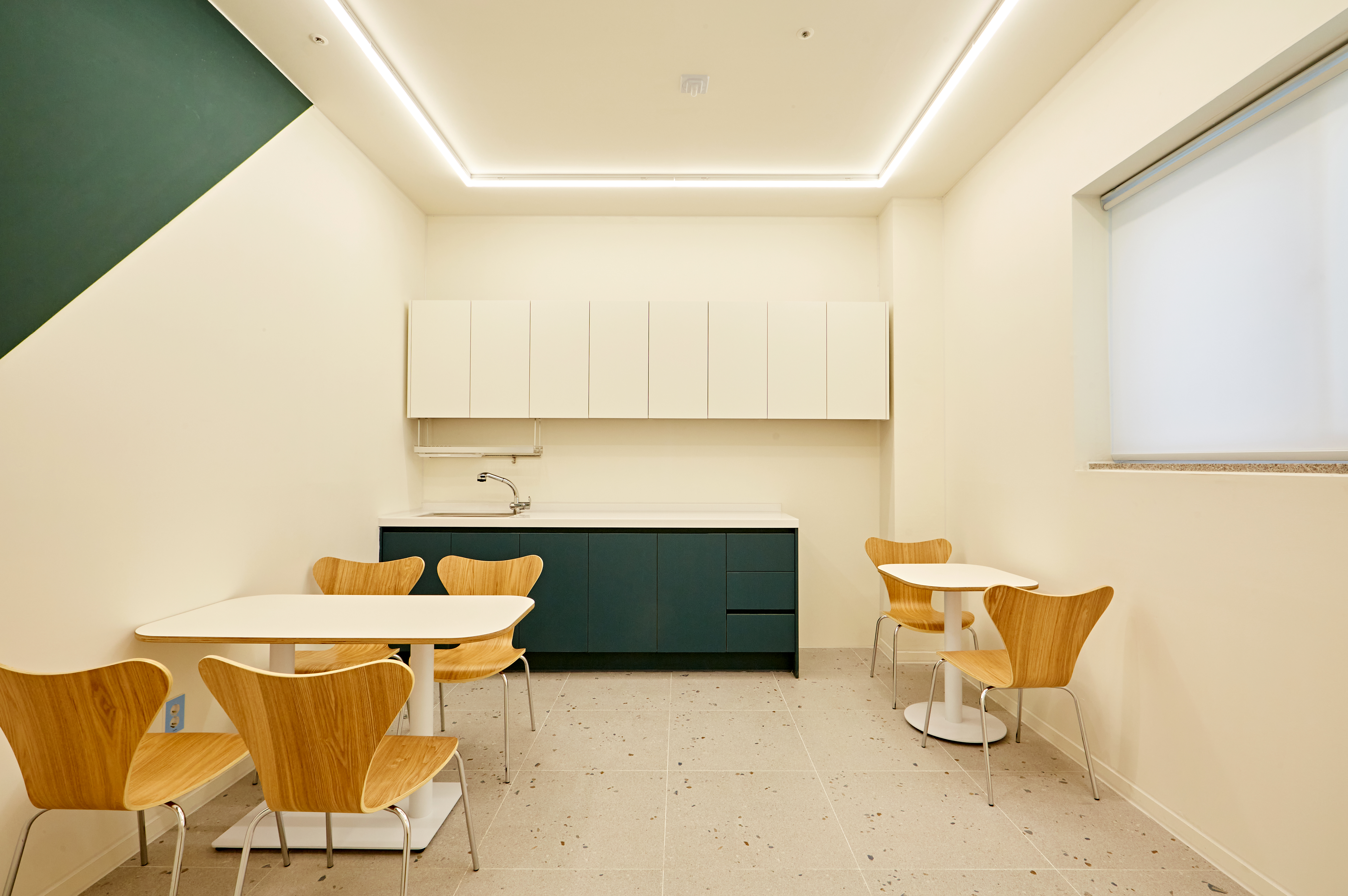 하얀 공간에 포인트를 주었으며, 그린과 화이트 톤의