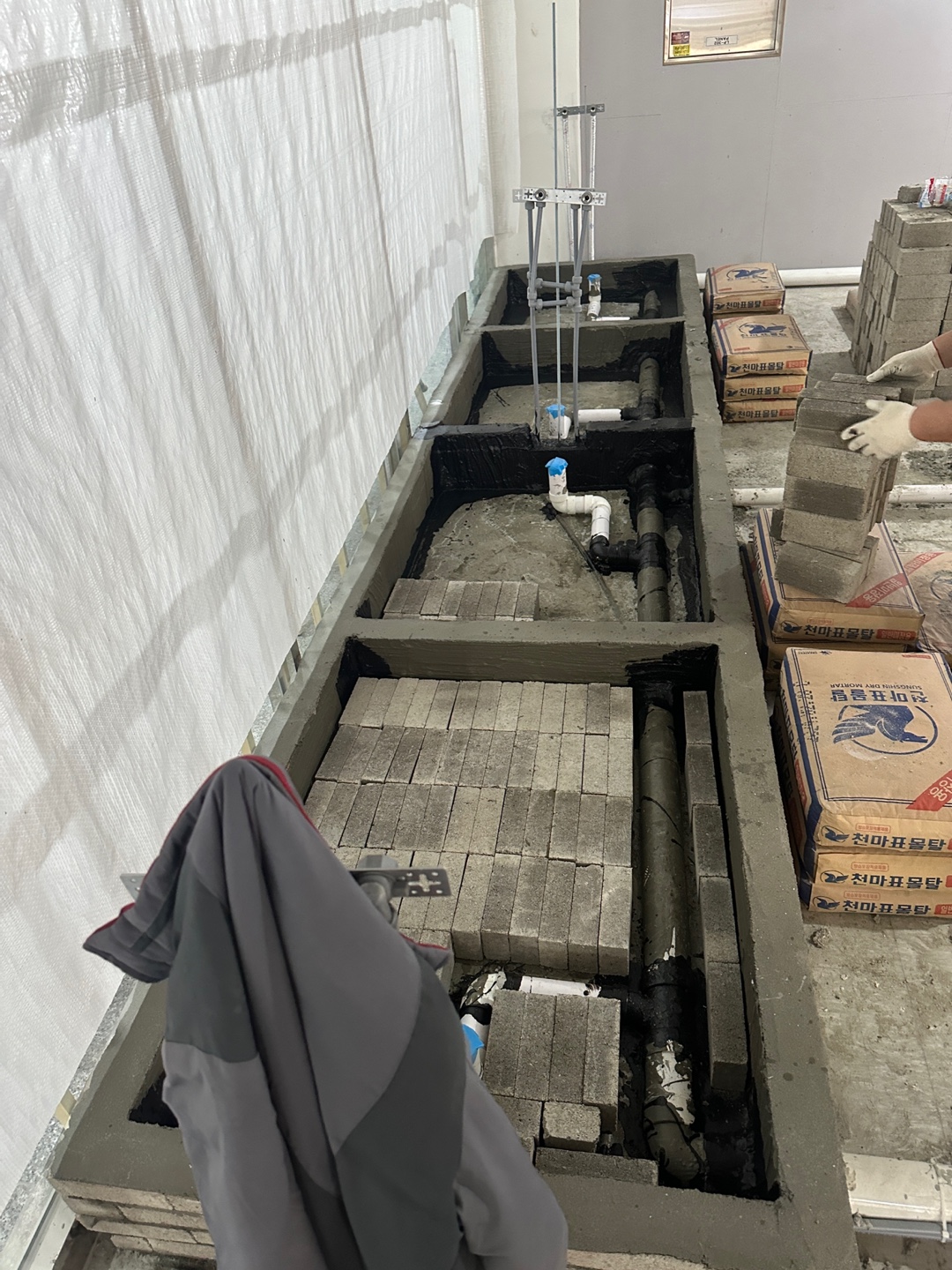 단순히 물이 빠지는 배관을 깐다 정도의