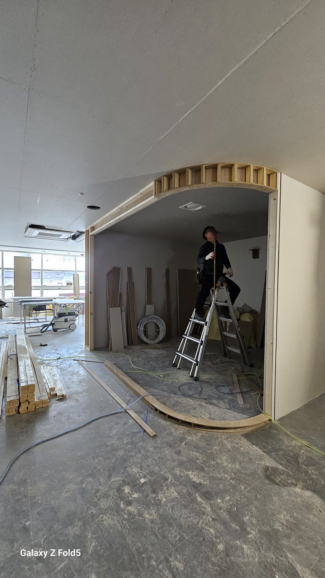 벽체 도색, 바닥재 교체, 조명 설치 등 다양한 작업이 동시에 진행되며,