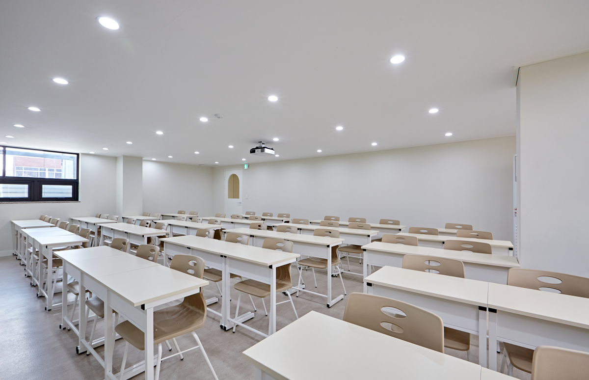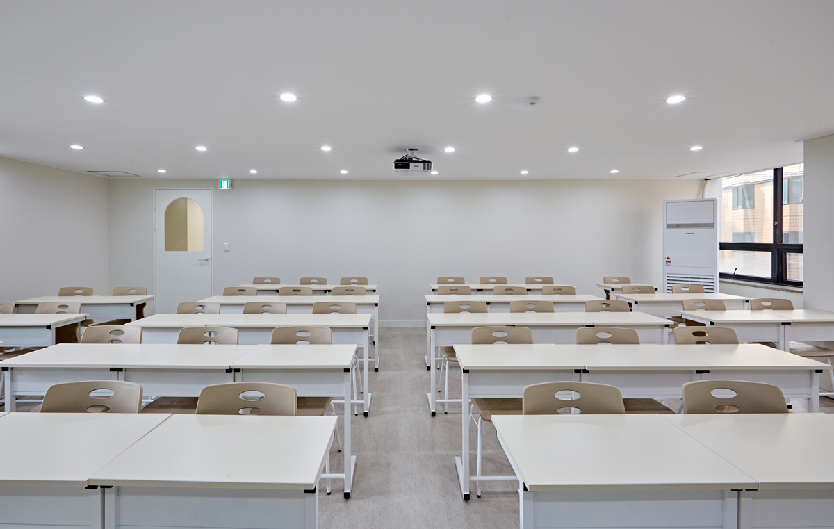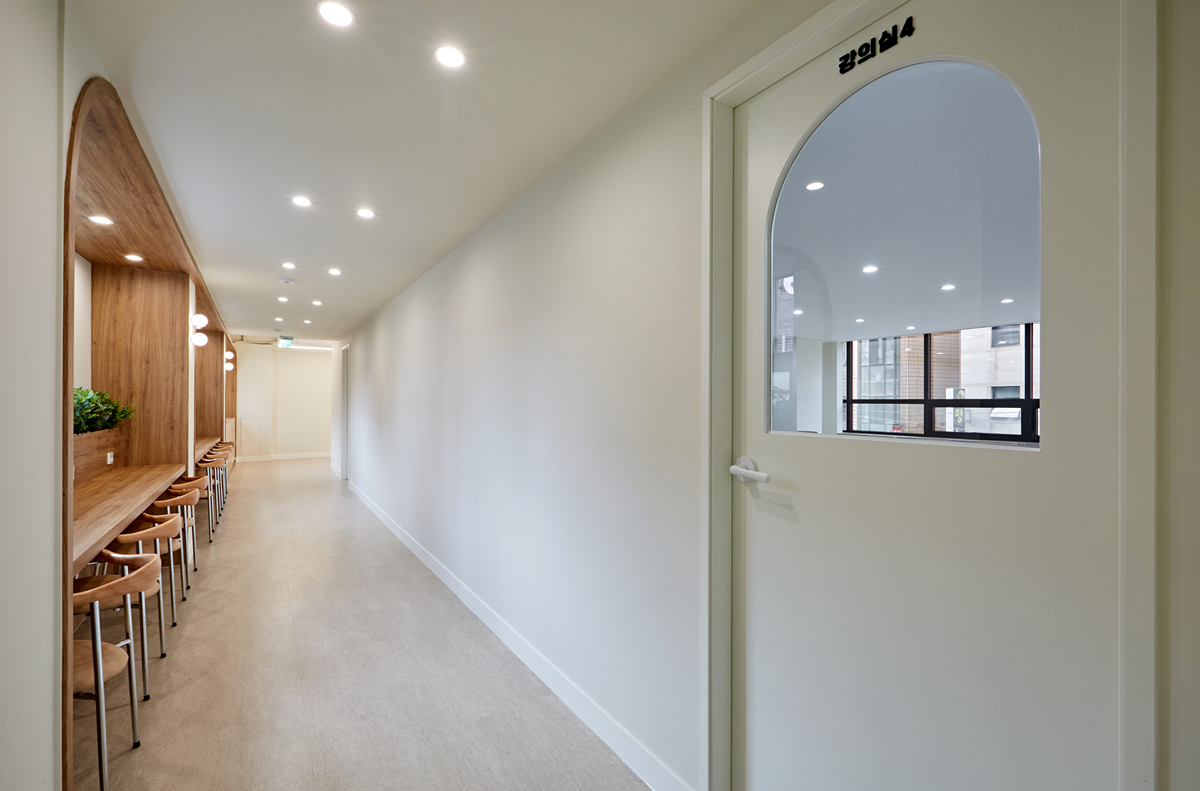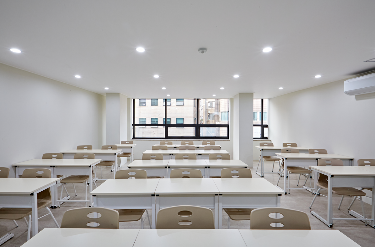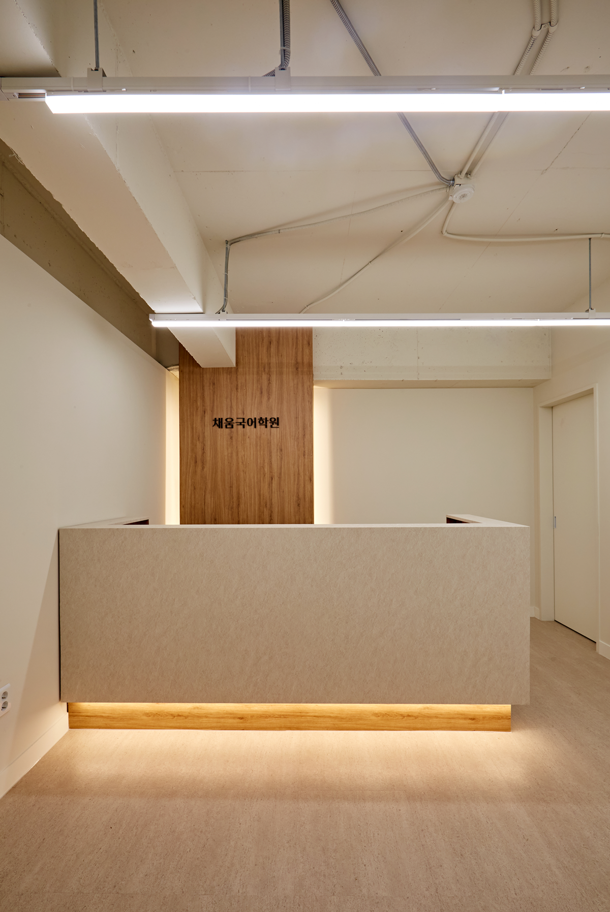 인포데스크와 상담실은 고급스러운 우드 소재를 사용하여 세련되면서도 아늑한 느낌을 주었고, 강의실 내부는 밝은 조도의 LED 조명을 설치하여 눈의 피로를 줄이고 집중력을 높일 수 있도록 하였습니다.