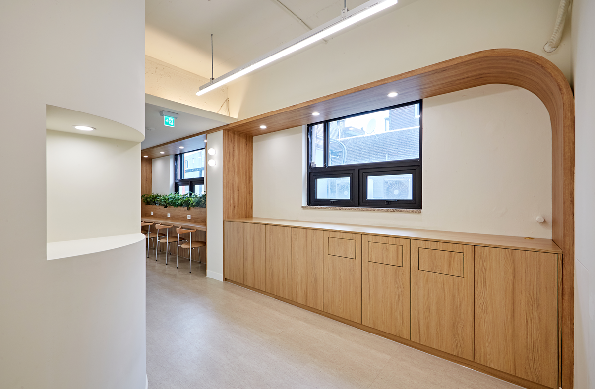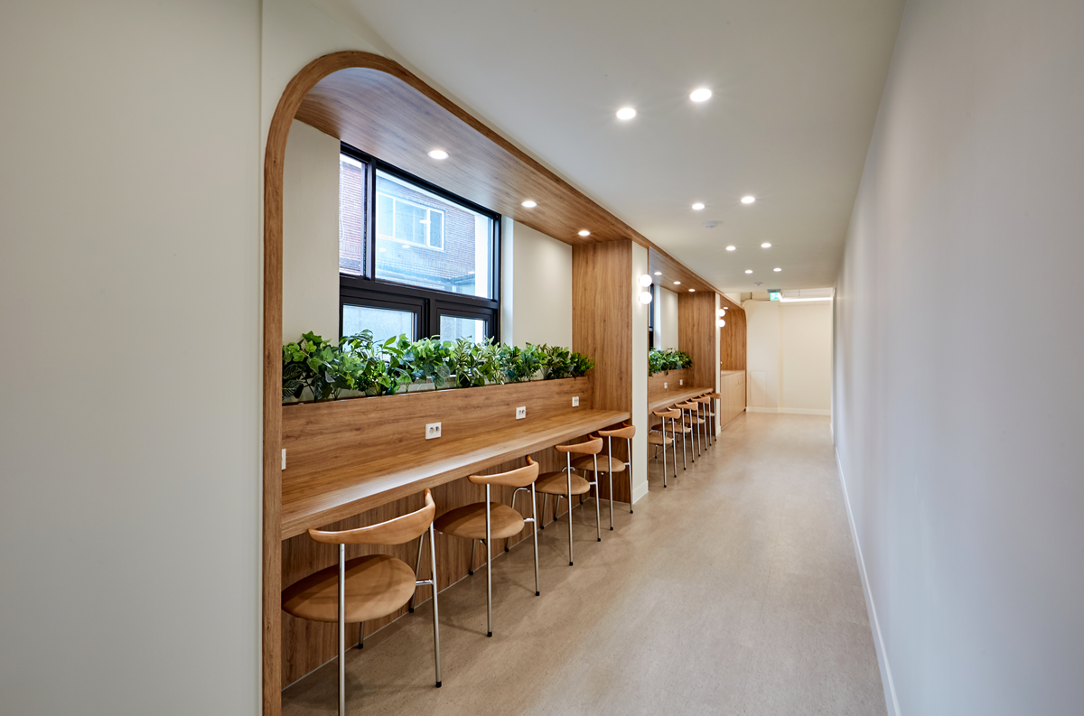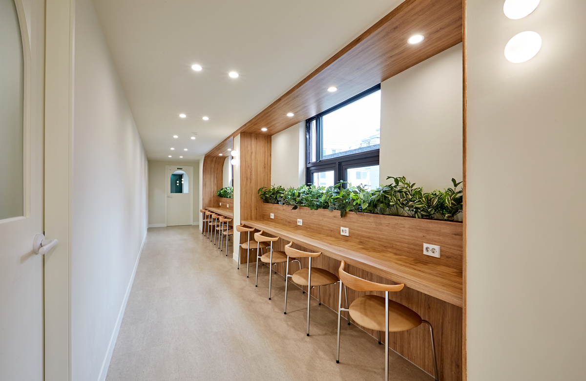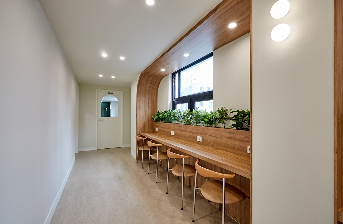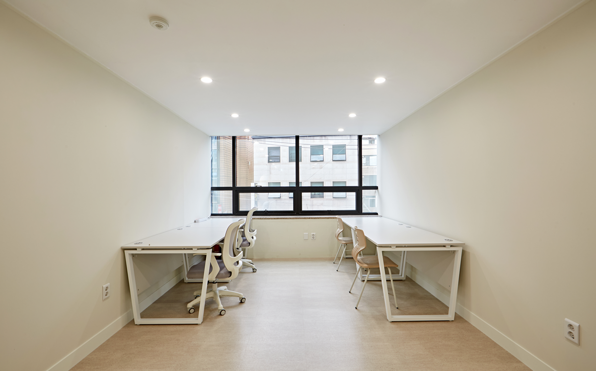 인포데스크와 상담실은 고급스러운 우드 소재를 사용하여 세련되면서도 아늑한 느낌을 주었고, 강의실 내부는 밝은 조도의 LED 조명을 설치하여 눈의 피로를 줄이고 집중력을 높일 수 있도록 하였습니다.
