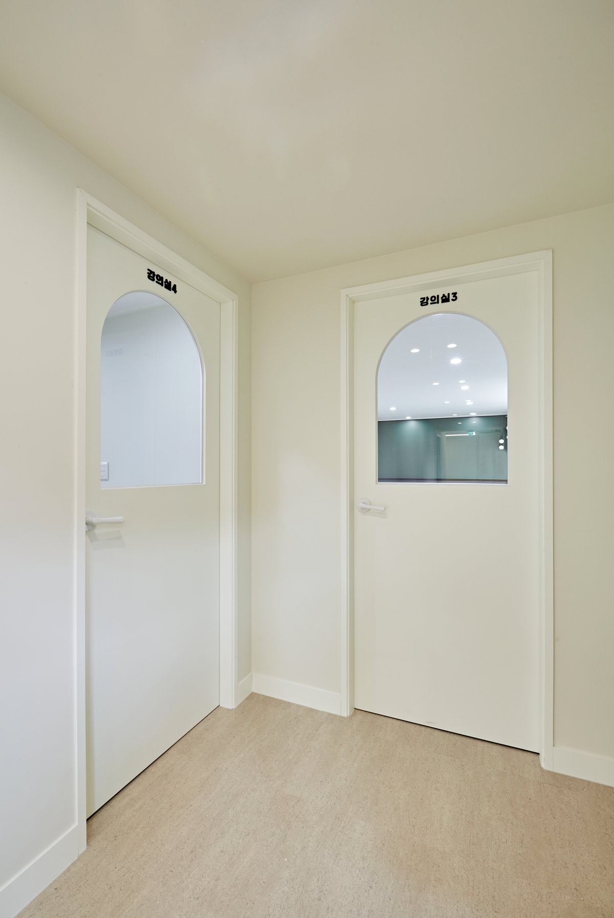 강의실 내부는 집중력을 높일 수 있도록 조명과 가구 배치에 신경 썼으며, 학원 입구와 로비는 학부모님들과 학원생들이 처음 마주하는 공간이기 때문에 세련되고 신뢰감을 줄 수 있는 디자인으로 설계하였습니다.