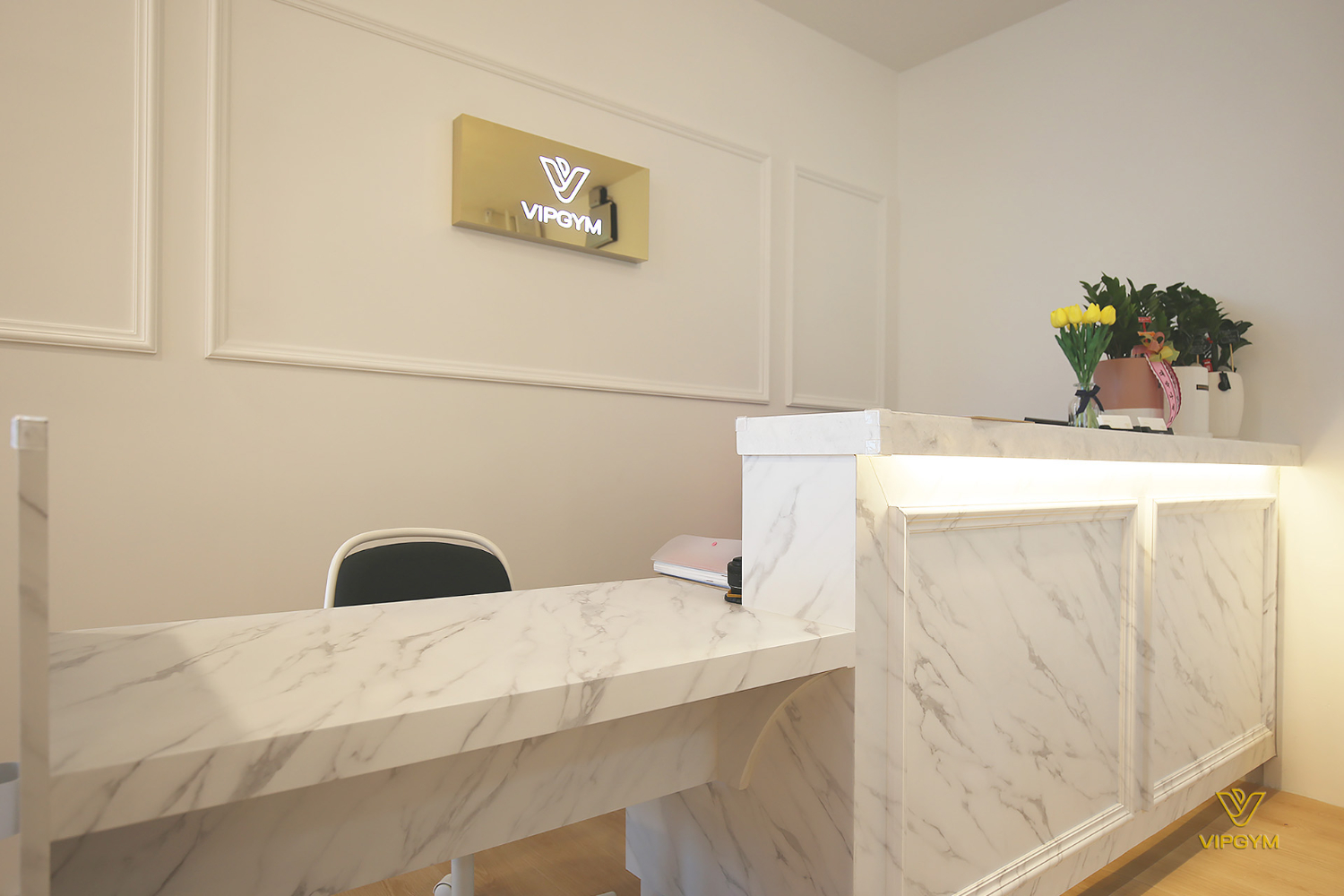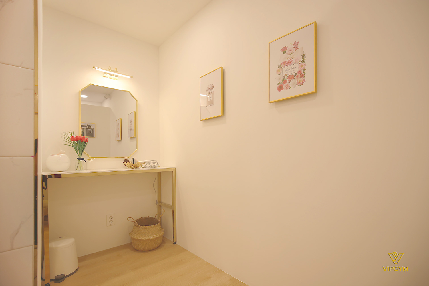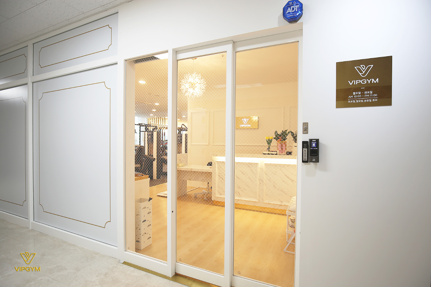 하남 미사 상가인테리어 헬스장 피티샵 화사한 화이트와 골드컬러의 고급스러운 조합