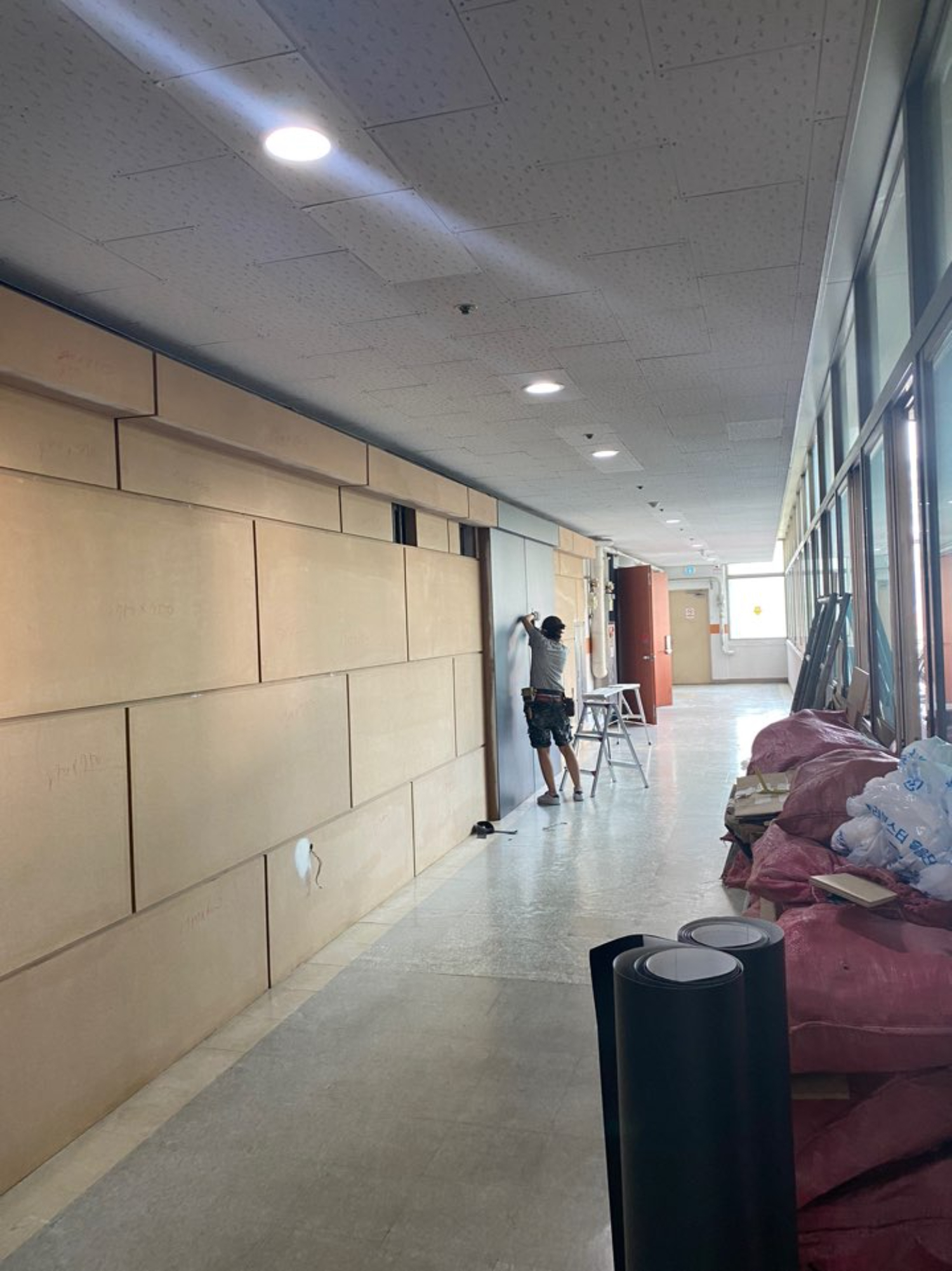 보통 파주 일산 고양 사무실인테리어 현장에 가보면 기본 밑바탕을 만드는 작업부터 시작하게 됩니다. 철거를 진행하면서 기존에 남아있던 모든 것들을 없애고 그림을 그리기 좋은 하얀 도화지처럼 모든 것을 無의 상태로 만드는것이 우선인데요. 깔끔하게 철거를 하고 정리하고부터는 밑바탕이 되는 목공작업과 도배 그리고 장판등의 작업을 시작합니다.