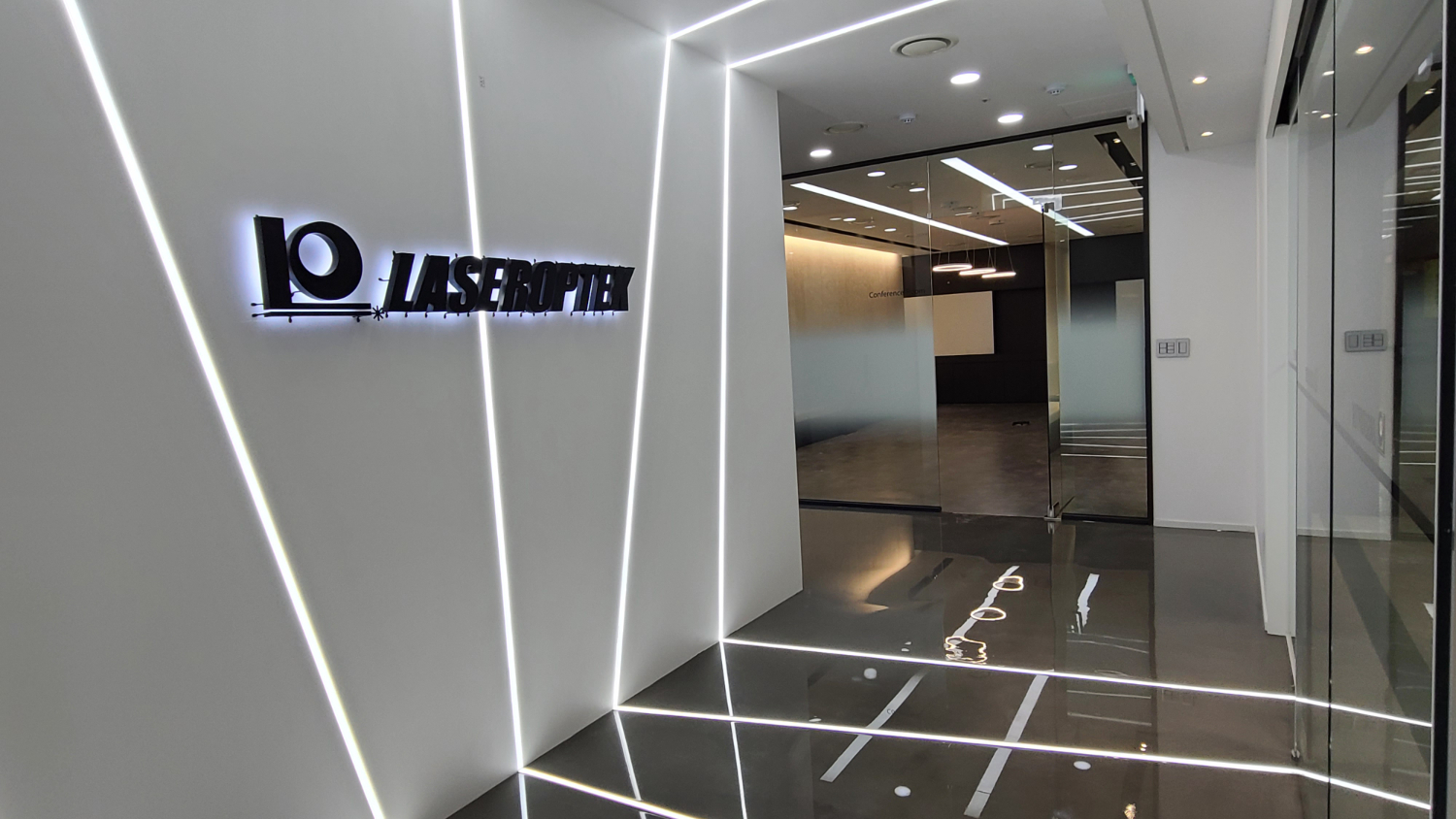이번에 의뢰주신 기업은 레이저를 이용하여서 다양한 산업 및 의료용으로 인정받고 있는 곳이었는데요. 기업의 사명에서도 느껴지는 레이저라는 포인트를 조명으로 활용하여서 사무실에서 회사의 정체성과 이미지를 바로 직관적으로 느낄 수 있도록 만드는것이 목표였습니다. 그래서 입구 파사드는 물론 처음 들어서는 로비에서도 조금은 독특하고 신비한 느낌의 조명을 사용했는데요.