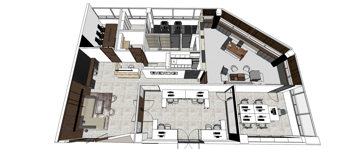 업무 공간, 회의실, 휴게실 등 각 공간의 용도와 크기를 결정하고, 직원들의 편의와 업무 효율성을 고려하여