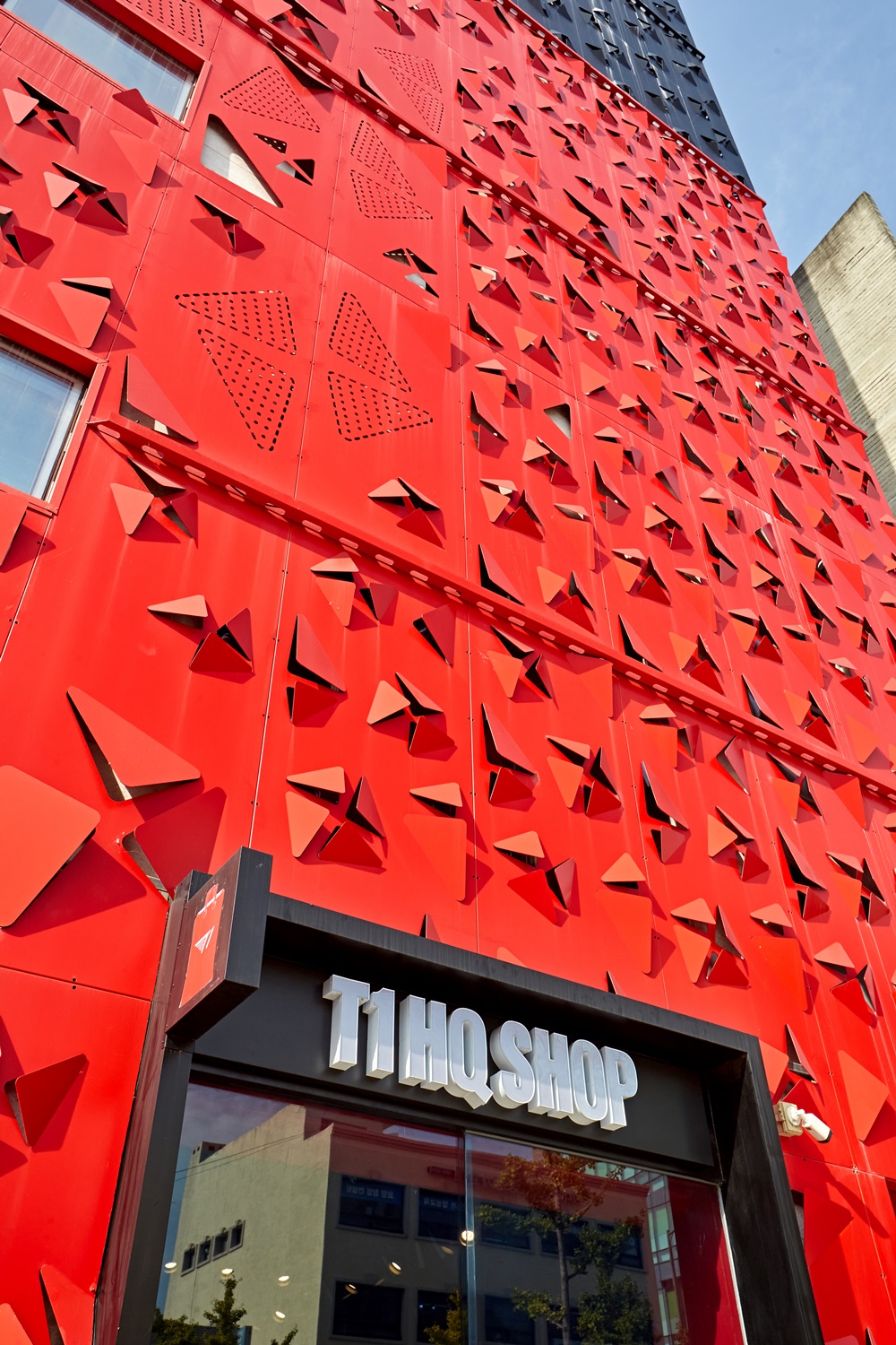금속 패널과 유광 마감재는 빛을 반사하며 고급스럽고 현대적인 분위기를 만들어 브랜드가 추구하는 세련된 이미지를 극대화했답니다.