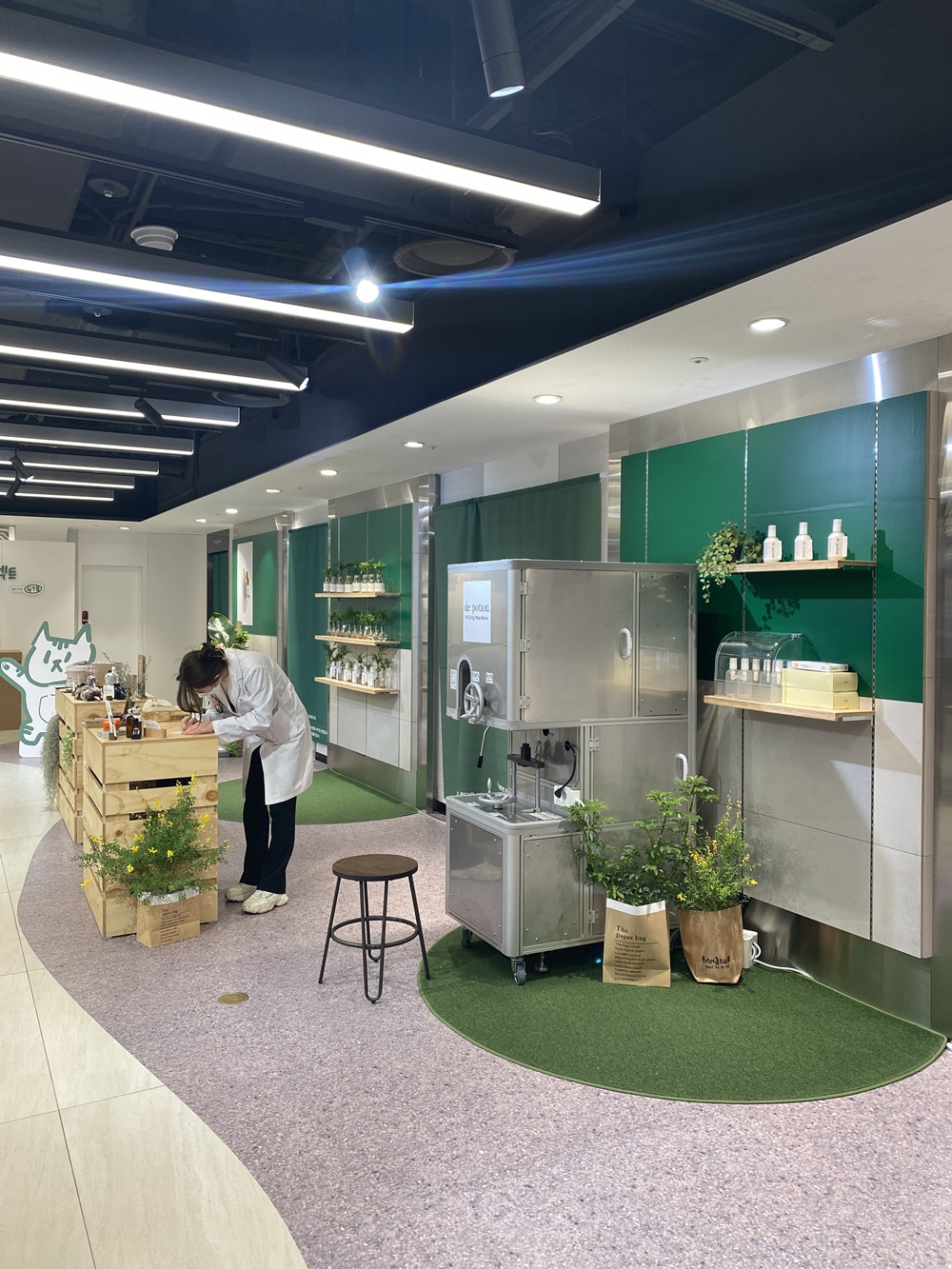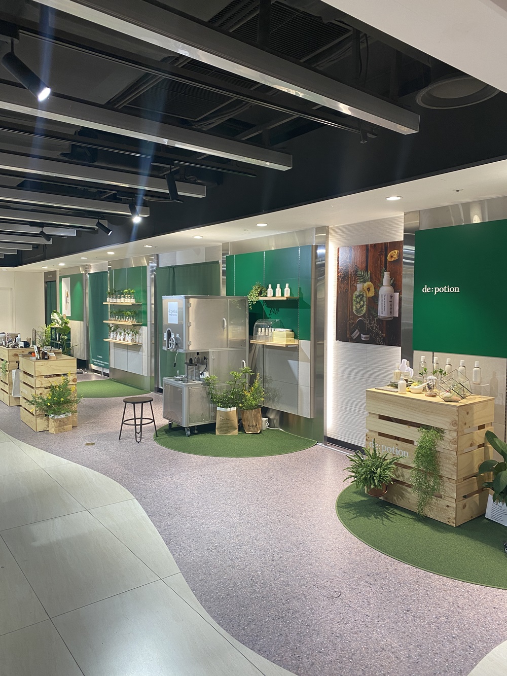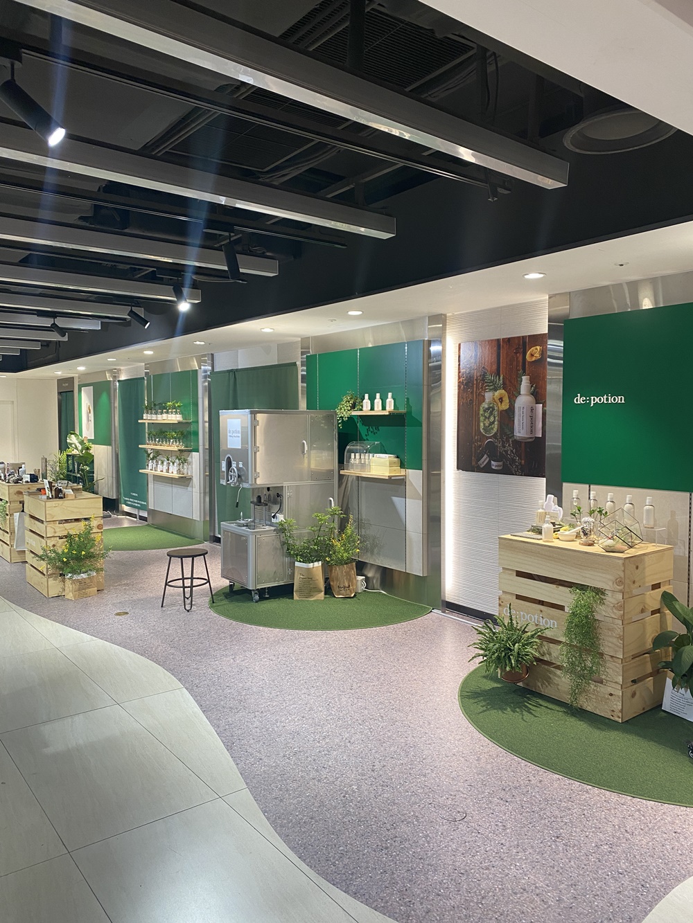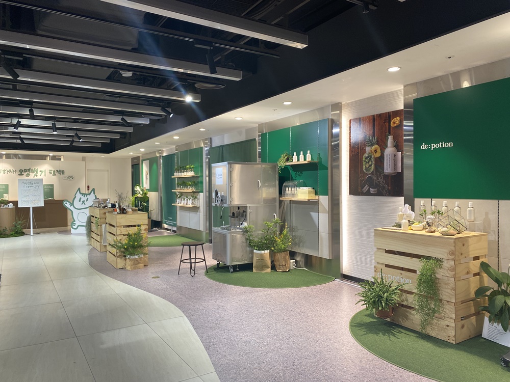 자연주의 컨셉의 뷰티샵에서는 단순한 쇼핑 공간 외에도 다양한 체험 공간이 필요해요.
