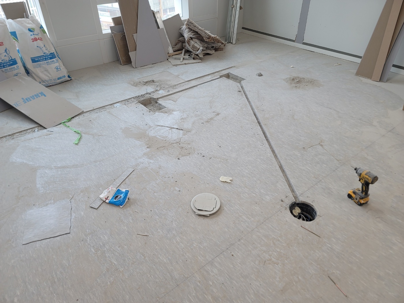 바닥에 관련 수도 배관 공사를 진행했습니다.