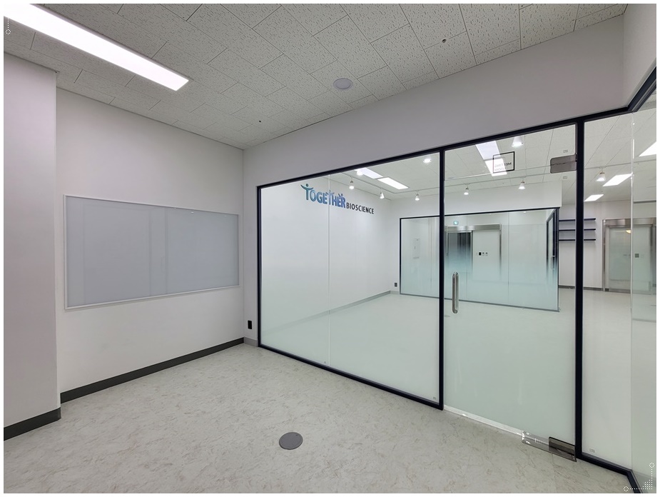 독립적 개별 공간은 블랙 프레임의 유리 가벽을 시공해 분리했습니다. 투명한 유리 가벽은 개방성, 연장성, 확장성의 장점이 있어 공간을 넓어 보이게 하지만 너무 직접적인 노출이 부담스러울 수 있기 때문에 하단부나 가운데에 시트지 시공을 적용하면 프라이버시를 확보할 수 있습니다.