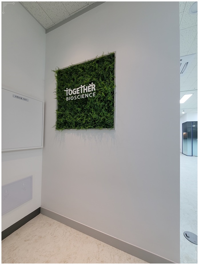 깔끔하고 세련된 디자인의 유리 도어를 열고 들어가면 깨끗한 하얀색 벽에 회사명과 로고를 연출한 간판이 붙어있습니다. 환경 관련 기업의 이미지에 맞게 식물로 연출한 간판이 인상적이면서 덕분에 회사의 정체성을 확립할 수 있었고 가독성을 높였습니다.