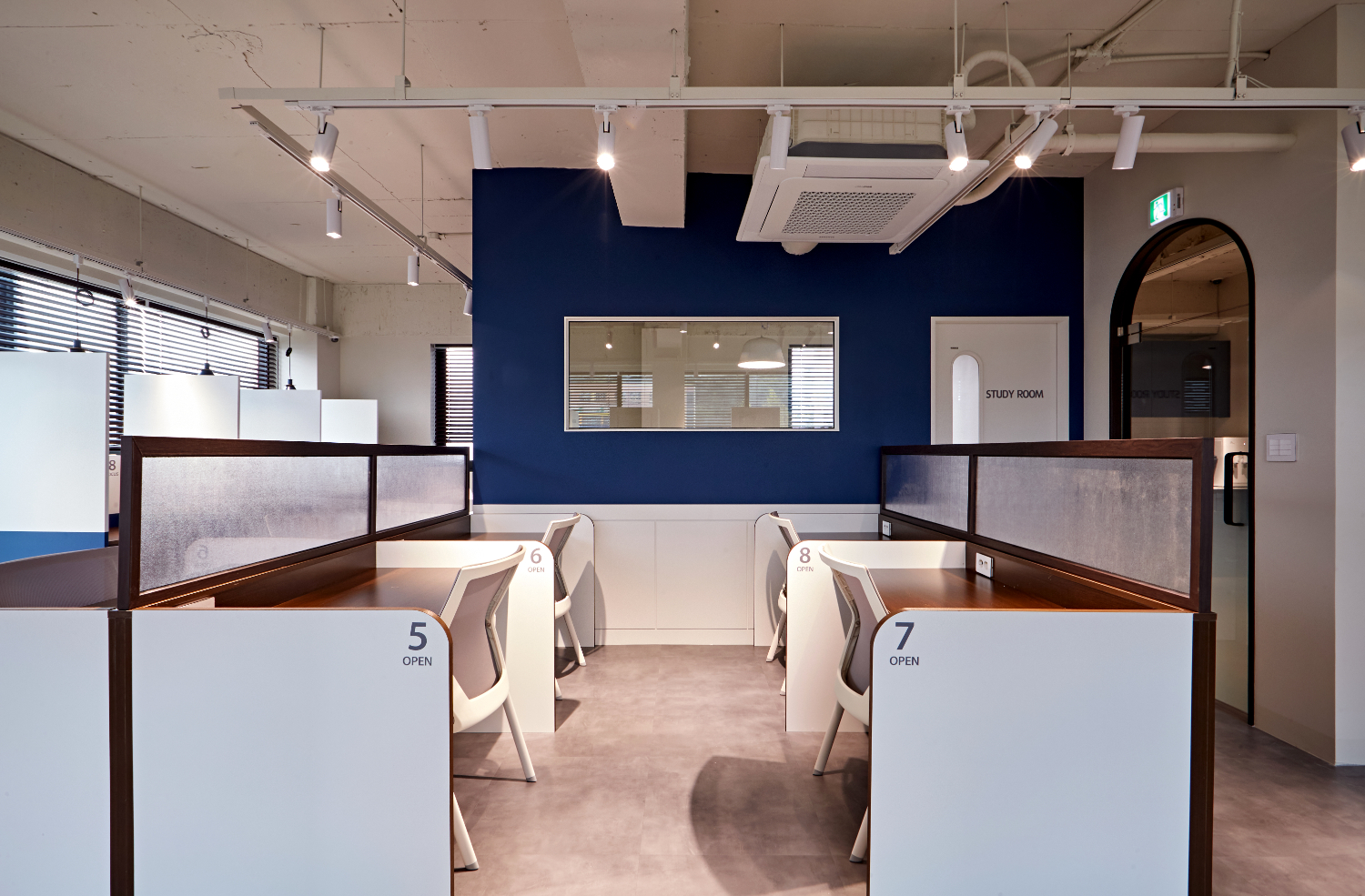 누군가는 완벽하게 독립되어 있는 공간에서 공부의 효율성이 높아지지만 그렇지 않은 사람도 존재합니다. 그래서 파티션이 높지 않고 낮은 자리에는 조금 더 자율성을 높여주고 백색 소음을 통한 집중을 높여주는 곳인데요. 포천 동두천 양주 학원인테리어는 모두의 니즈를 만족하기 위한 제안을 드렸습니다.