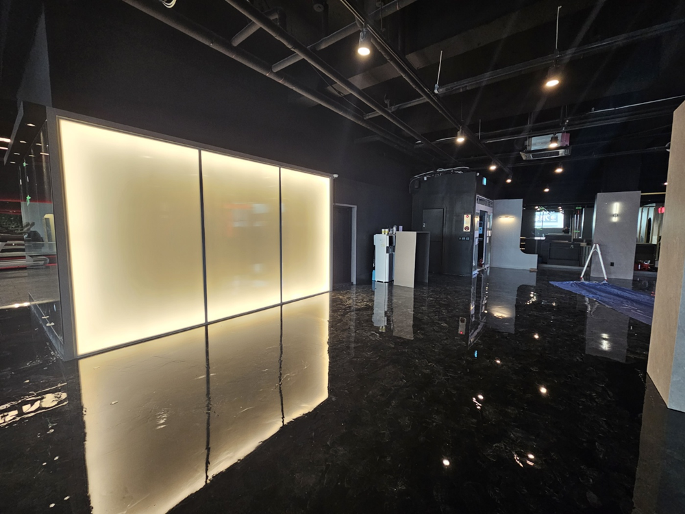 특히 바닥, 벽, 그리고 장비에 블랙을 활용하여 전체적으로 통일감 있는 분위기를 만들어 보았습니다.