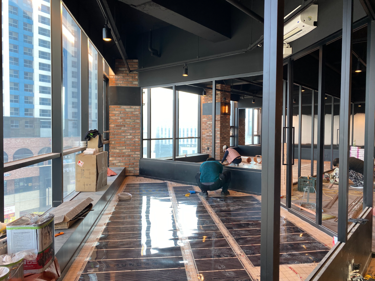 그 다음은 새로운 공간의 뼈대를 만들어주는 철골 작업입니다. 공간 구분은 목공 작업으로 진행을 하는경우도 있으나 이번 현장은 벽면을 글라스월로 설치할 예정이라 철골도 같이 사용 했습니다.