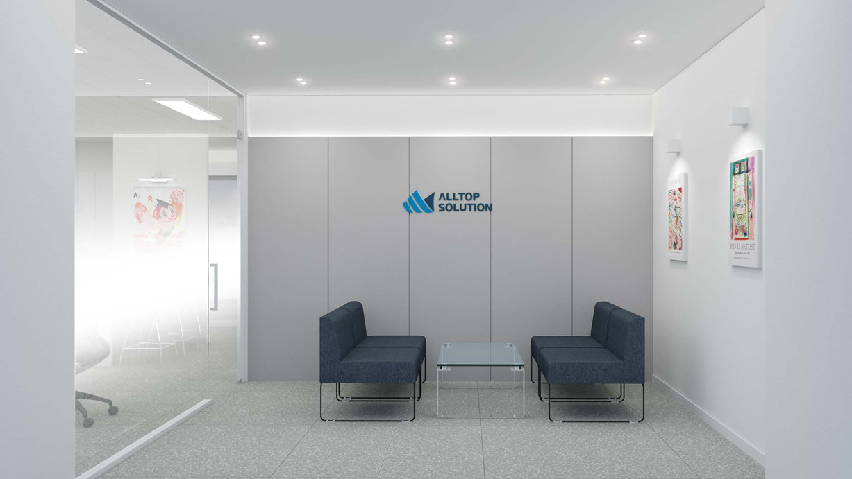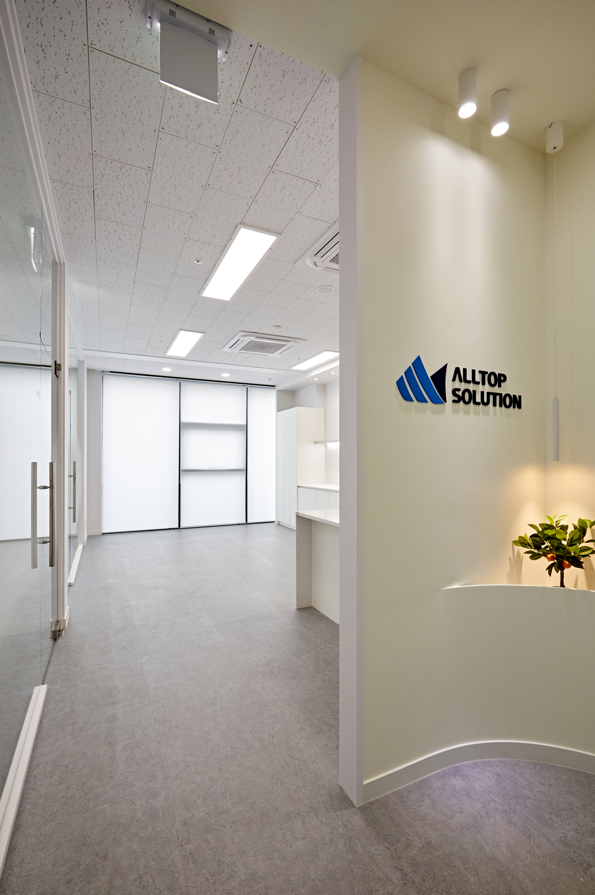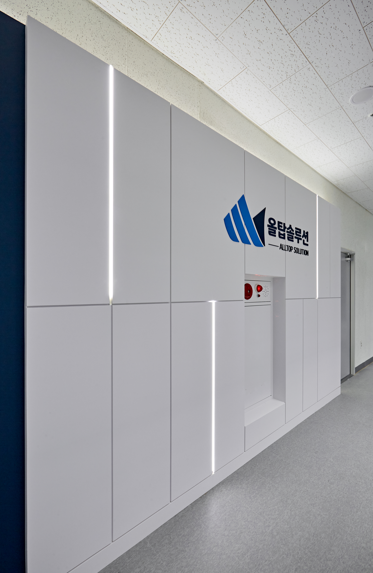 군더더기 없는 디자인과 함께 벽면 한쪽에는 기업 로고를 부착해 브랜드의 권위와 정체성을 명확히 전달하였습니다.