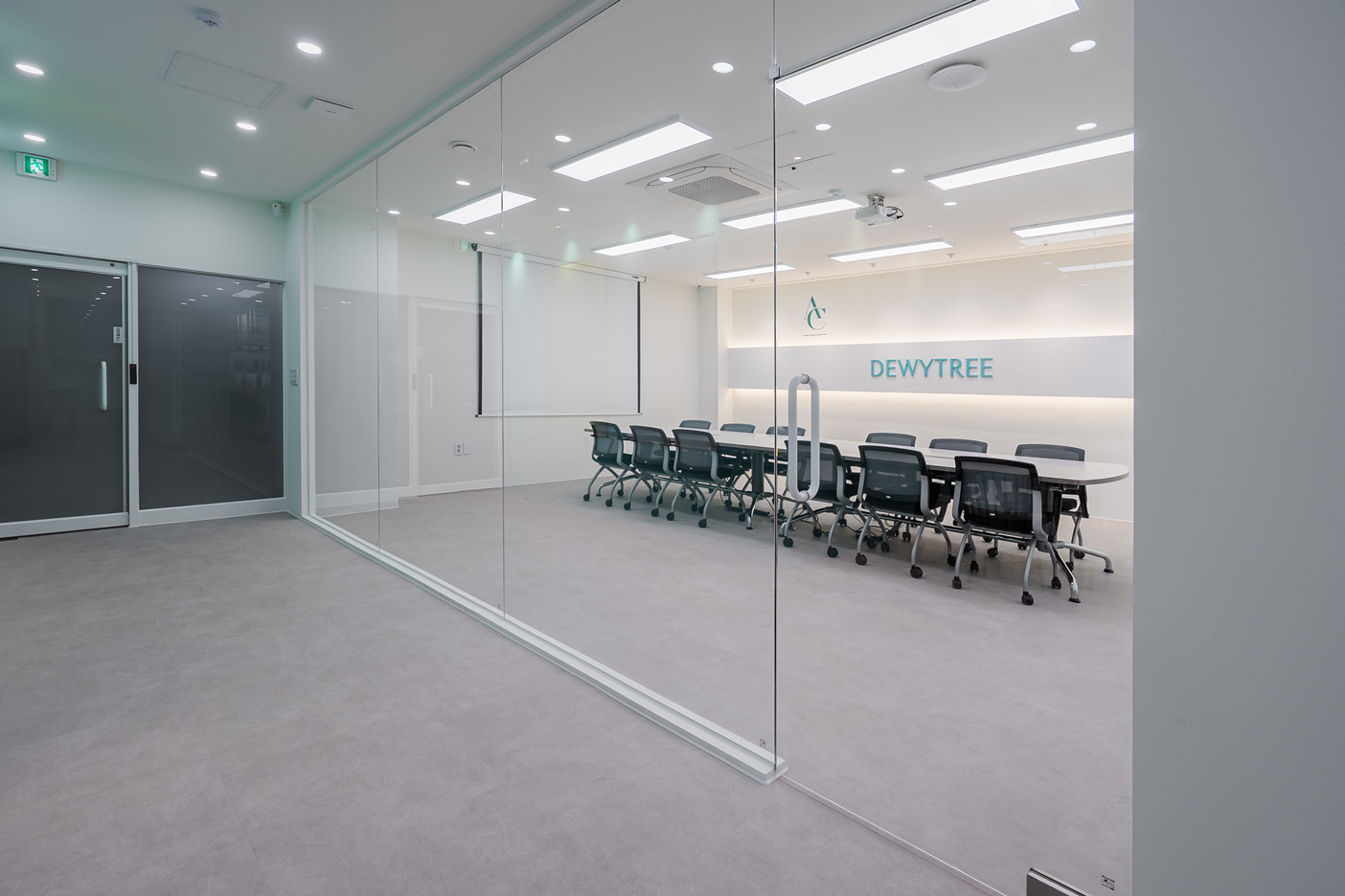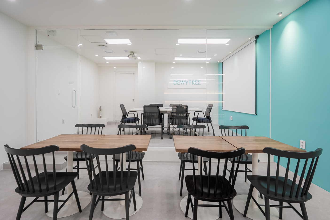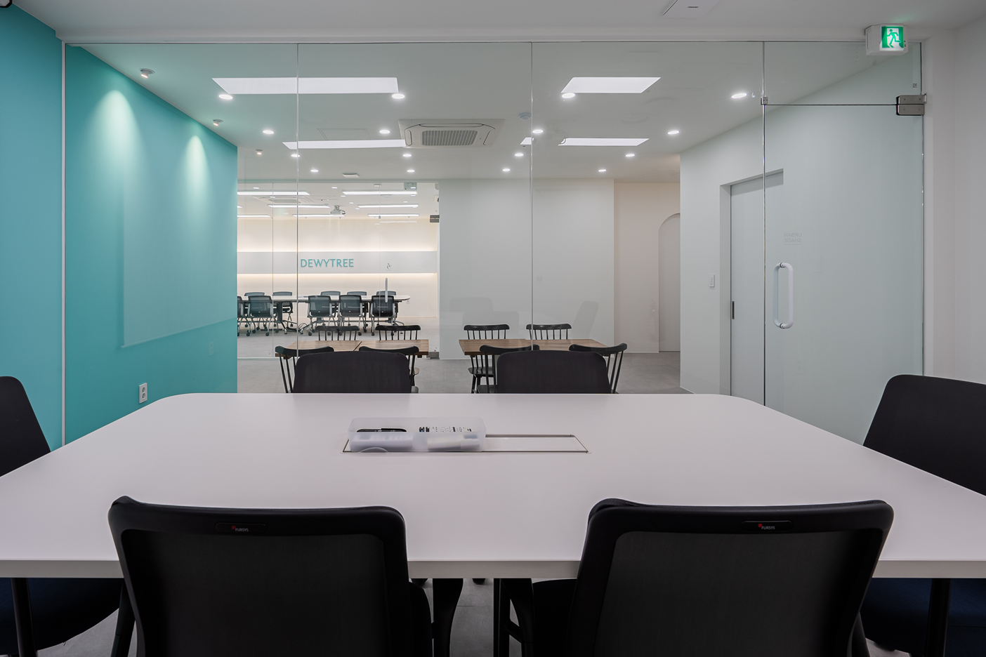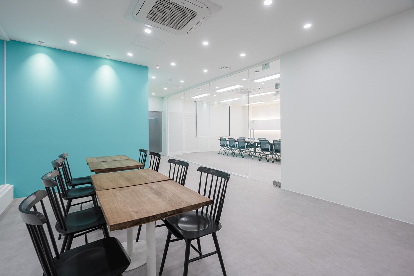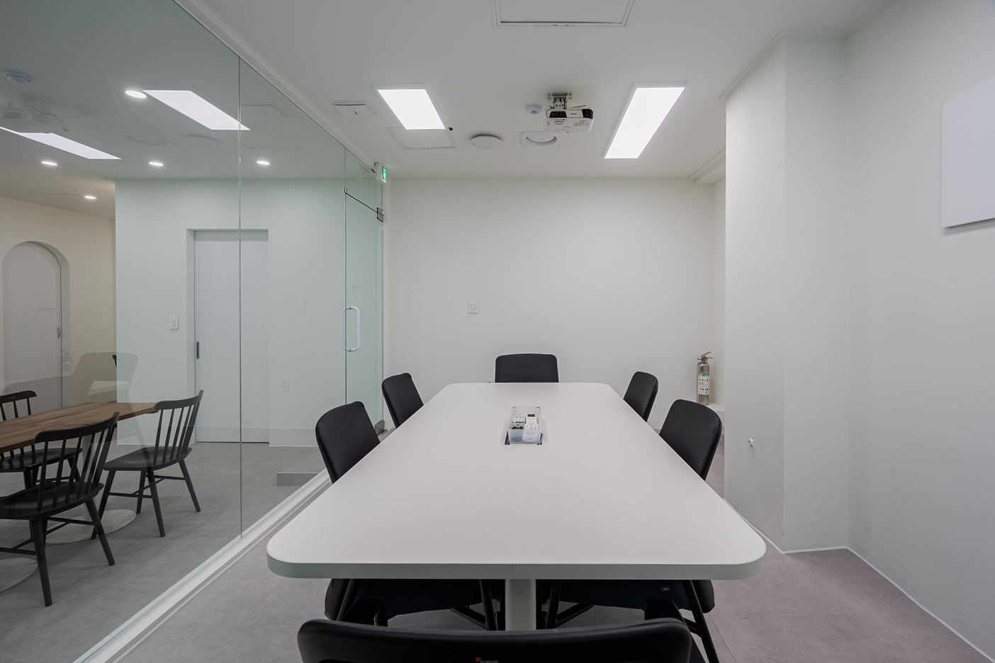 투명 유리가벽은 공간을 분리하면서도 시각적으로 개방감을 유지해주며, 외부에서는 회의 중인 모습이 자연스럽게 비치어