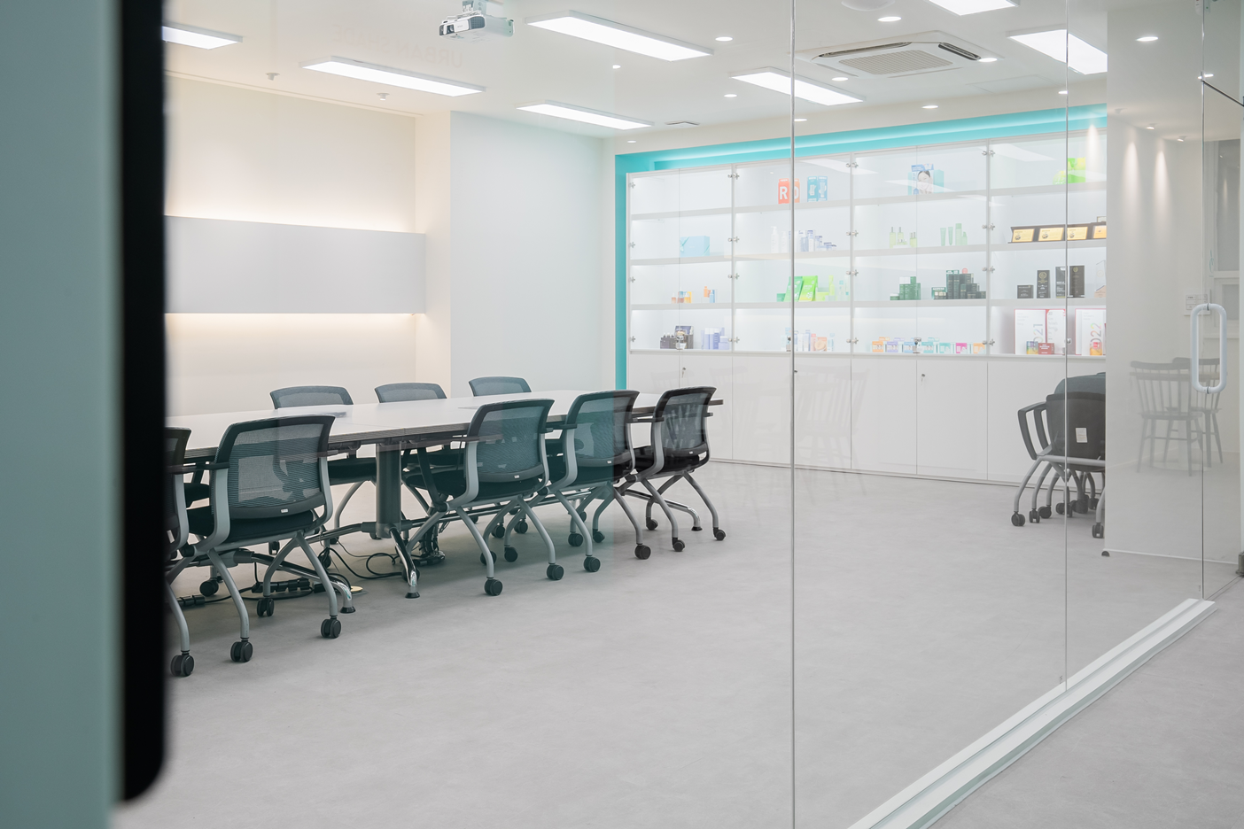 이번 사무실은 브랜드 전시가 가능한 벽면 진열장과 유리 가벽이 핵심 포인트이기 때문에