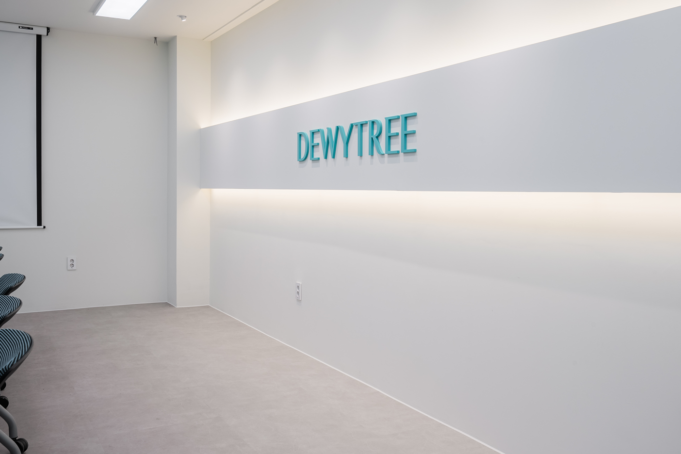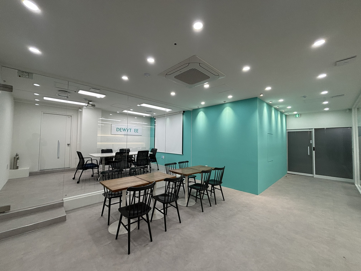 기업의 아이덴티티 색상은 민트색상을 벽면에 포인트로 적용하여 공간 자체가 과하지 않으면서도