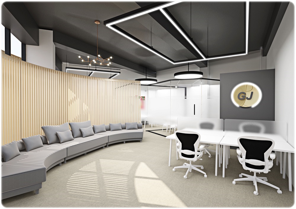 이러한 3D 도안을 통해서 클라이언트와의 조율이 끝난 저희는 현장시공작업을 마무리하게 되었고 이처럼 멋진 사무실을 완성할 수가 있었습니다.