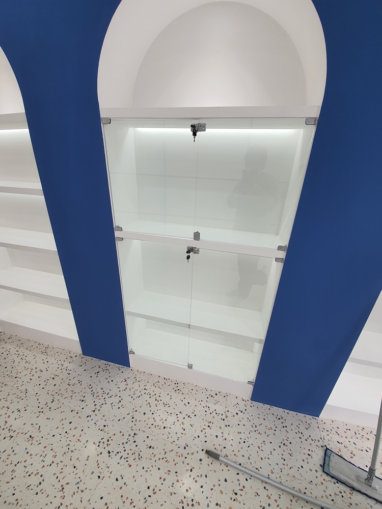 진열장 선반에는 쿨톤의 주광색 등을 시공했는데요, 간접조명으로 시공해 은은한 빛으로 제품을 빛나도록 했습니다.