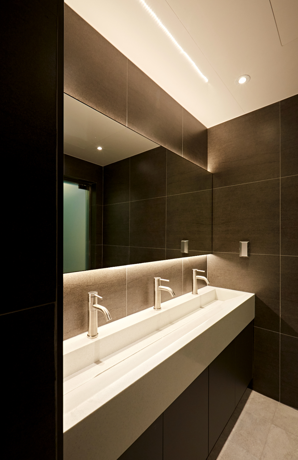 구성을 시도하였으며 길게 가득찬 세면대에는