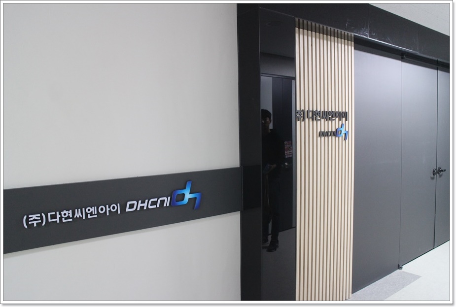 그렇게 최종 시안을 확정한 후 공정에 따른 절차를 철저히 지키며 안전하고 완벽하게 공사가 완공된 모습을 살펴보겠습니다. 블랙 프레임과 우드 간살을 적용해 모던하면서 고급스러운 분위기로 디자인하고 필름 시공으로 마감한 입구 파사드입니다. 기업 이미지가 중요한 요즘은 회사 첫인상이 되는 입구 및 내부 파사드에 신경을 많이 쓰고 있는데요,
