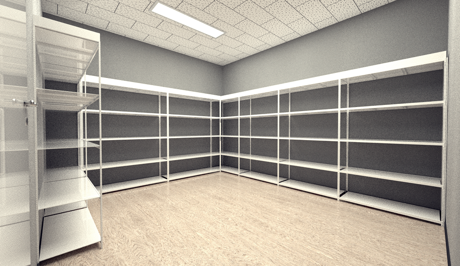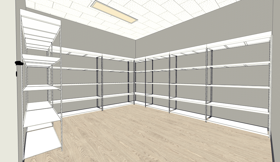 입구측에 배치돼잇는 자료실 겸 창고입니다. 인테리어와 어울리는 컬러와 디자인의 세련된 철제 선반을 계획해 방대한 양의 자료나 제품 등을 보관하고 진열할 수 있도록 배려했습니다.