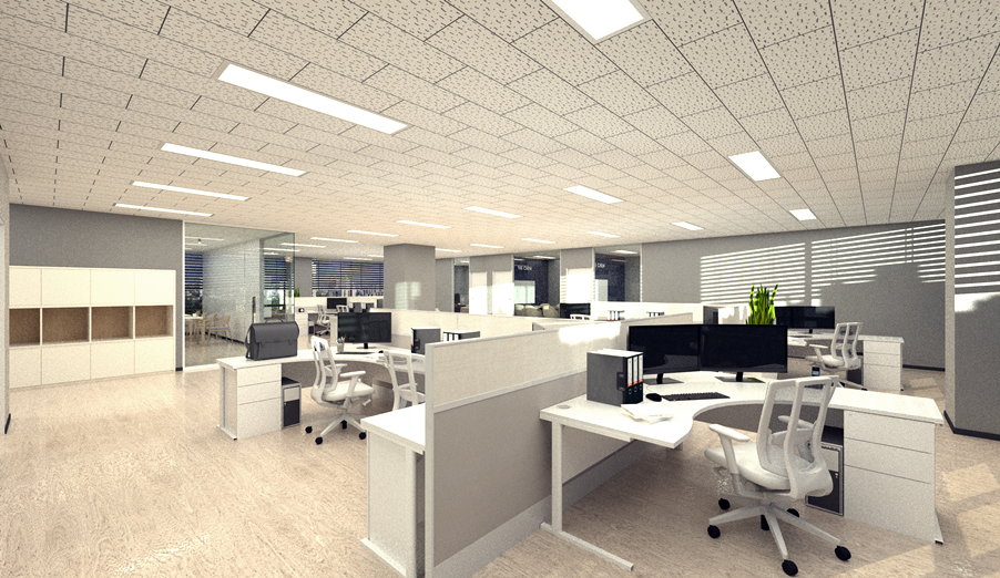 오픈형으로 계획된 공용 사무공간입니다. 아이소매트릭으로 그려진 도면도 대략적인 느낌은 오지만 3D로 시뮬레이션한 이미지와는 퀄리티적으로 차이가 많이 나죠? 우드톤으로 바닥을 마감하고 낮은 파티션을 적용해 개인 공간을 보장했으며 매립형 천장 조명을 계획해 층고를 확보하고 깔끔한 모습을 갖췄다는 정도는 아이소매트릭으로도 알 수 있지만 어떤 분위기로 구현되는지는 3D 이미지를 봐야 제대로 이해가 되는 것을 확인할 수 있습니다.