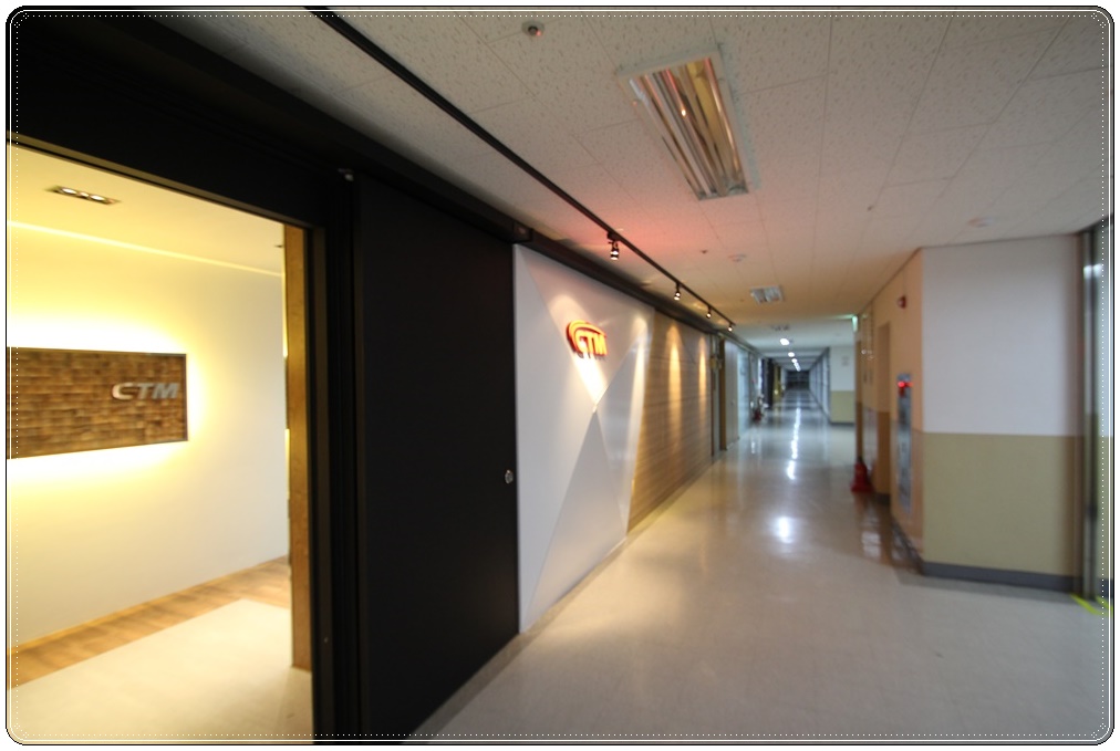 회사로고가 부착된 입구 파사드입니다. 복도식으로 밀집해 있는 건물에서 입구 파사드는 회사의 이미지를 대표하는 첫인상이기 때문에 사람들으비 시선을 사로잡을 수 있는 디자인을 선호하시는 편입니다. 그도 그럴 것이 첫인상을 결정하기도 하지만 홍보, 마케팅의 목적으로도 활용될 수 있는 공간이 입구 파사드이기 때문에 공사비용은 추가되더라도 반드시 진행하는 익스테리어입니다.